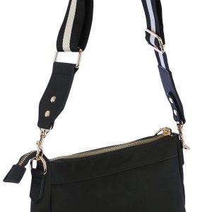 This crossbody purse is approximately 12 wide 8.5 high and 5.5 deep with two main compartments and two zippered pockets on the same side. It includes an adjustable strap and two slip pockets on each end for quick access. Designed for daily use this bag offers smart organization and a stylish compact shape perfect for travel errands or everyday wear.