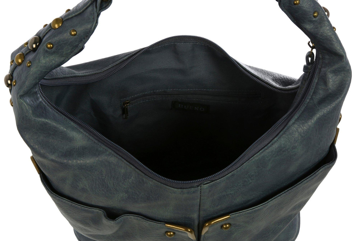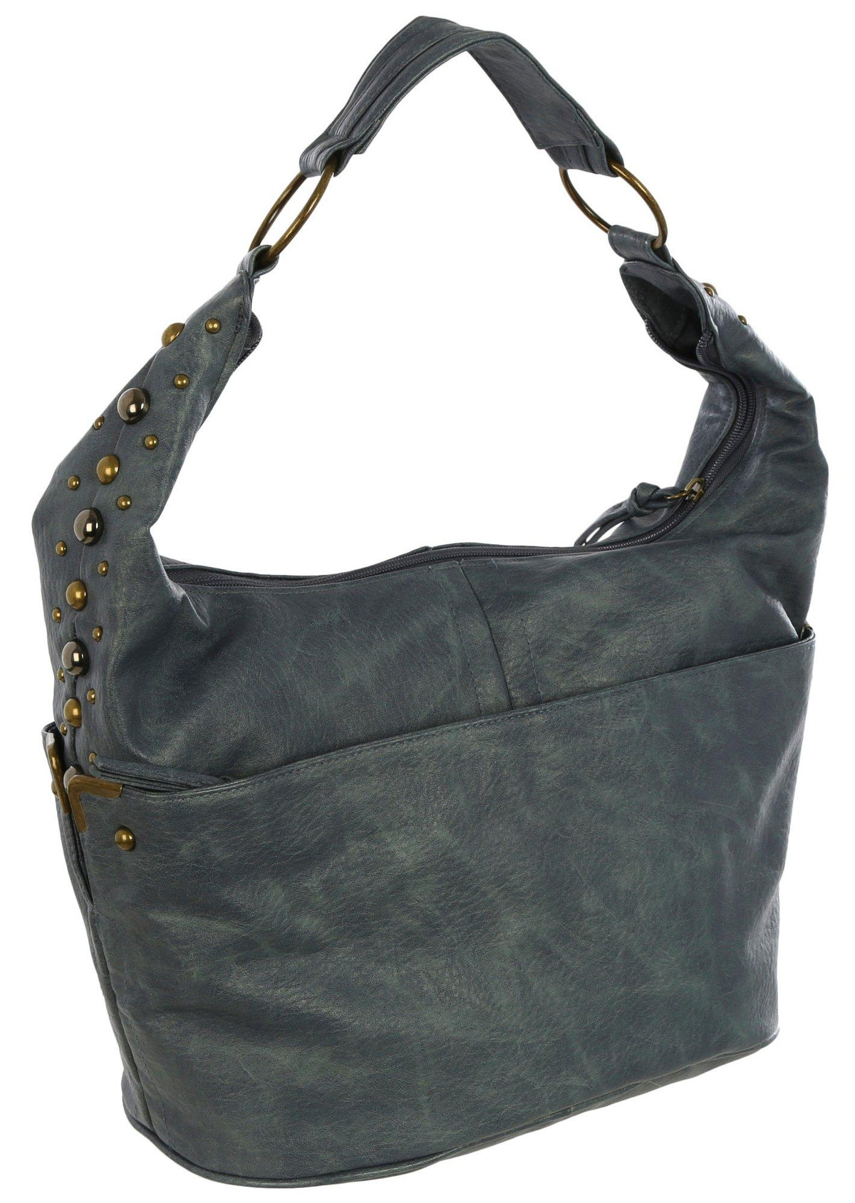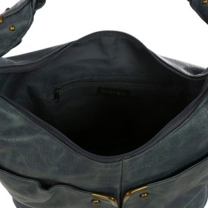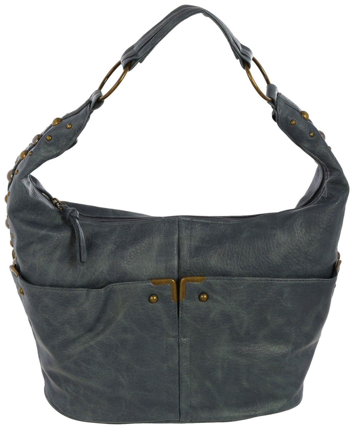 Introducing the Washed Antique Shoulder Bag a perfect blend of vintage charm and modern functionality. This bag features a stylish faux leather fabrication with bronze hardware and stud accents. It comes with a comfortable shoulder strap, an exterior back zip pocket, and exterior front snap button pockets for easy access. The top zip compartment reveals a spacious interior with slip pockets and a zip pocket, making it ideal for organizing your essentials. Measures 14 in x 7 in x 10 in.