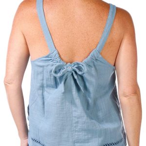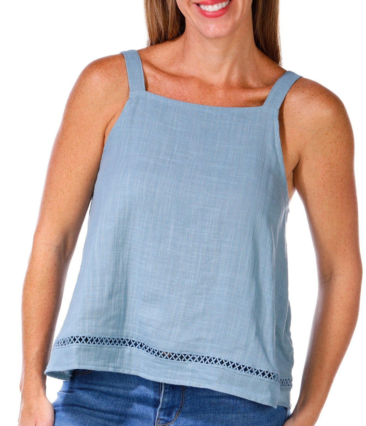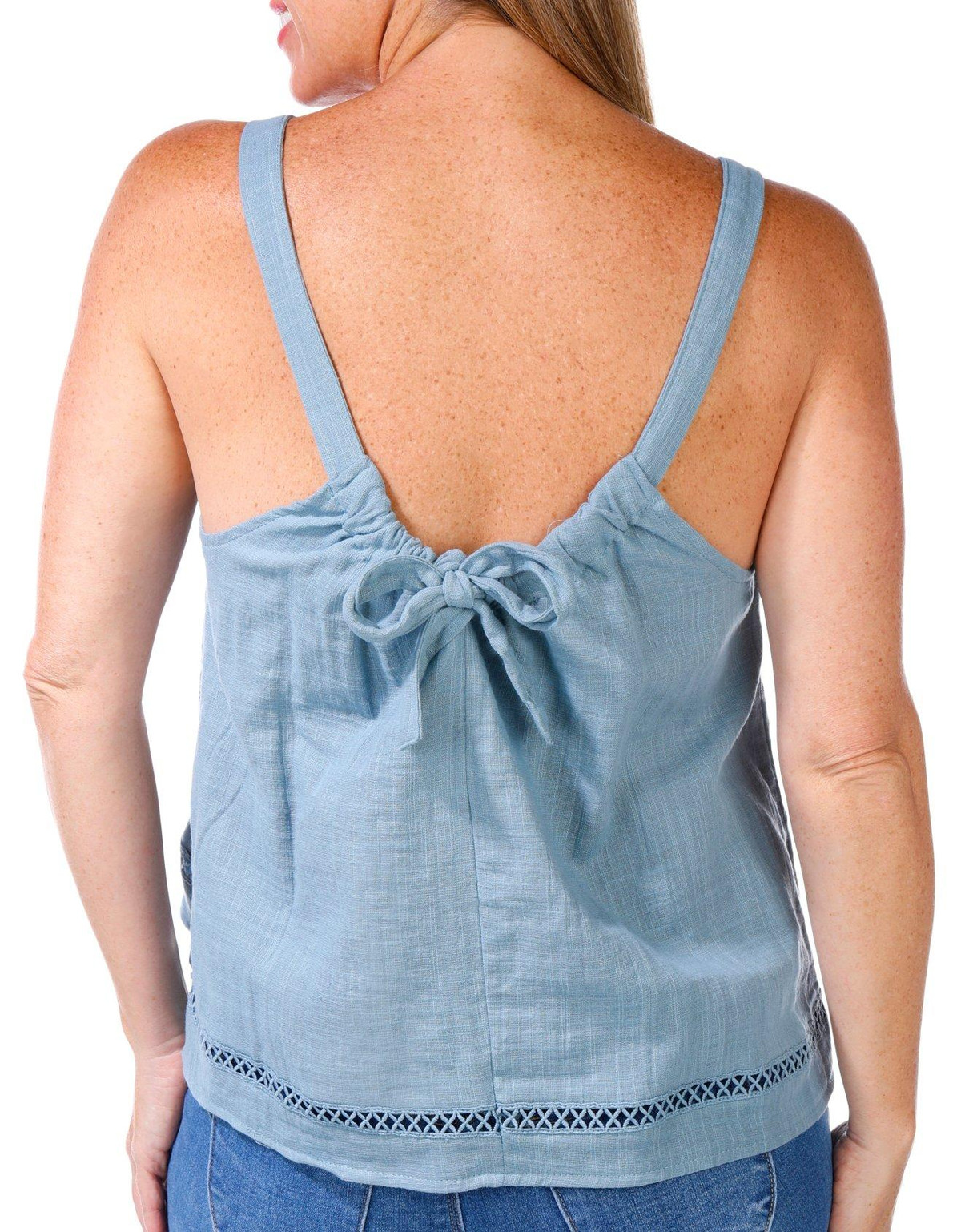 The Women’s Solid Sleeveless Crochet Trim Tank Top is a chic and versatile addition to your wardrobe. Featuring a solid color, delicate crochet trim at the hem, and a back tie detail, it is perfect for effortless style with a feminine twist.