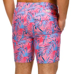 This Men’s quick dry performance stretch 5 inseam swimsuit, 100% Polyester with stretch. Mesh lining, secured back pocket with a grommet to aide with drainage and two side entry pockets. Sunset design. Beach or pool these men’s swimsuits are great looking and functional with lots of ease of movement. Quick dry and UPF protection fabric.