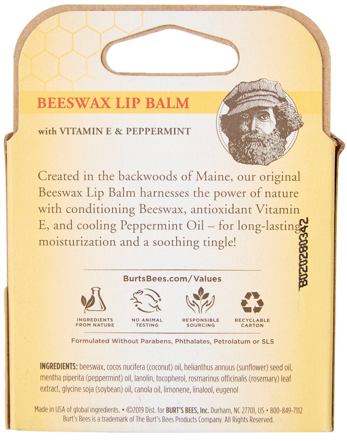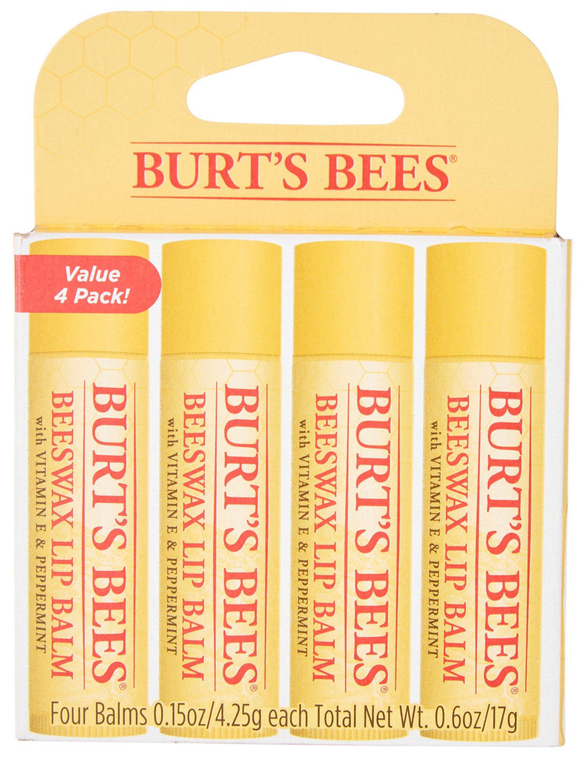This Burt’s Bees 4 Pc. Vit E & Peppermint Lip Balm Value Pack features vitamin E and peppermint moisturizing beeswax lip balms. Free of parabens, phthalates, petrolatum, and SLS. Cruelty-free. Net wt. 0.6 oz., 0.15 oz. each.