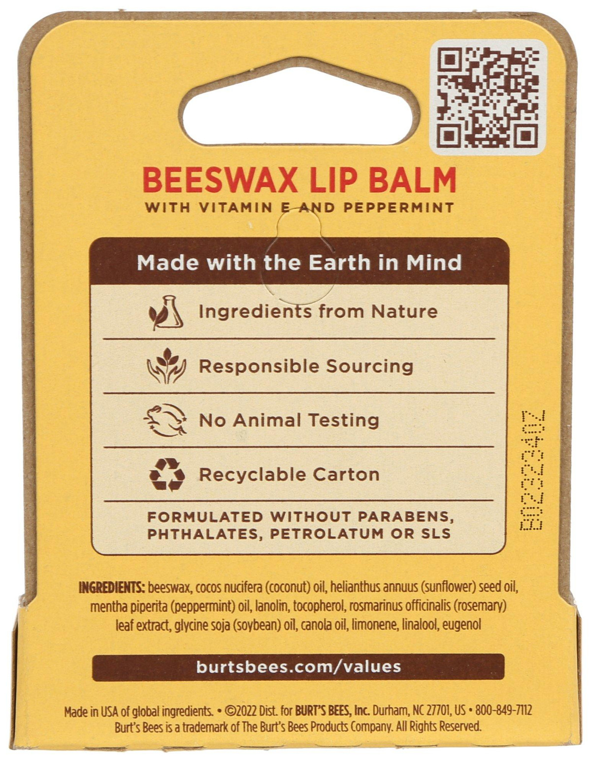 This Burt’s Bees Vit E & Peppermint Lip Balm features vitamin E and peppermint moisturizing beeswax lip balms. Free of parabens, phthalates, petrolatum, and SLS. Cruelty-free. Net wt. 0.15 oz.