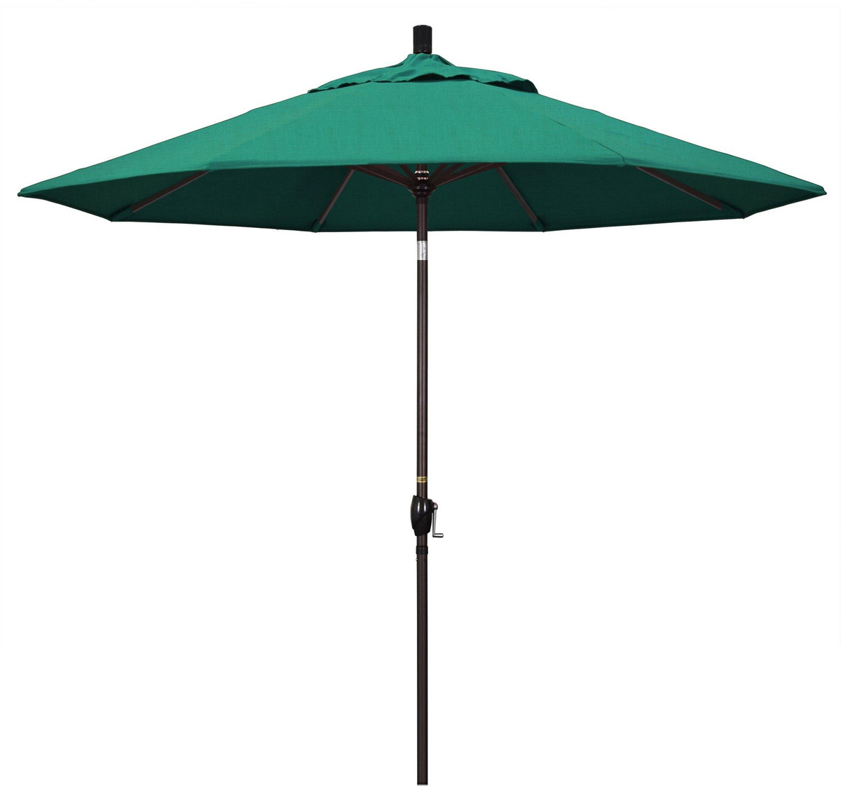 This traditional 9 foot California Umbrella market style is a top seller and offers the residential owner a beautiful market design without taking over their space. The bronze aluminum frame has a simple crank to open and push- to- tilt design as well as aluminum ribs to match. Canopy features Sunbrella fabric that is made from acrylic that is solution dyed that has SPF 50, and an overall life of 5+years. Base to top measures: 101”.