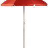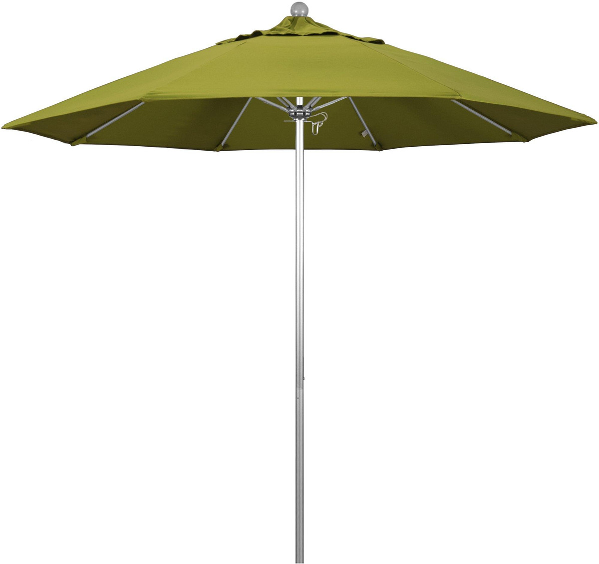 This heavy duty 9 foot commercial grade umbrella by California Umbrella offers all the features a residential or commercial owner demands, with a robust commercial grade aluminum frame. The strong aluminum pole frame is matched by a simple efficient push lift system and single wind standard vent. Pacifica fabric top is solution dyed canvas polyester fabric that is soft to the touch and SPF 40. Base to top measures: 101”.