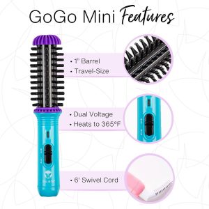 Perfect to tame small problem areas and touch-up hair throughout the day, the GoGo Mini Round Brush provides smooth volume and soft curls in a small-but-mighty package.