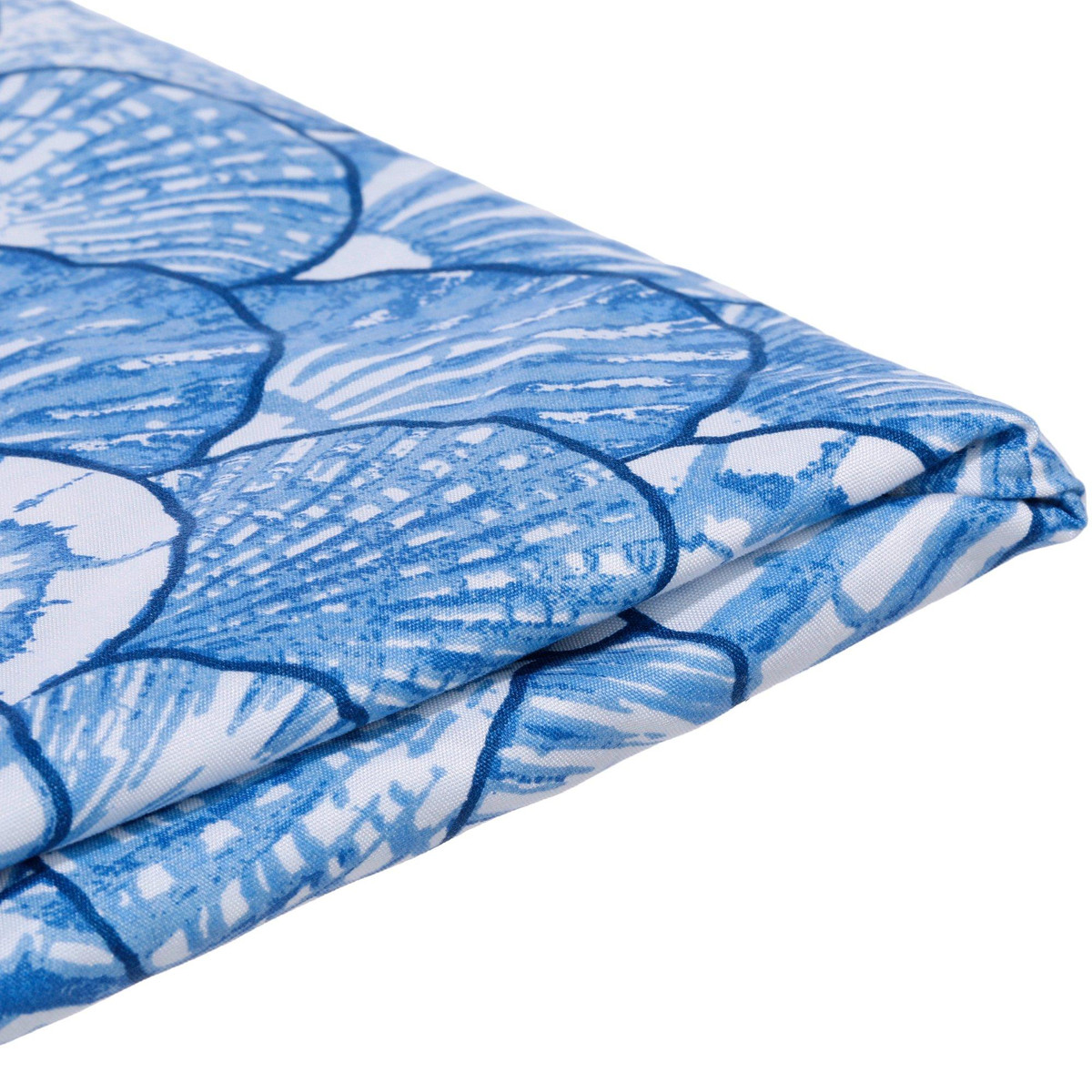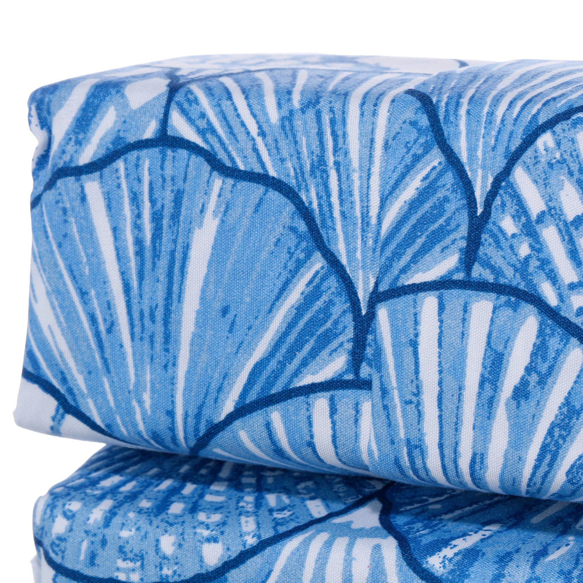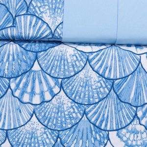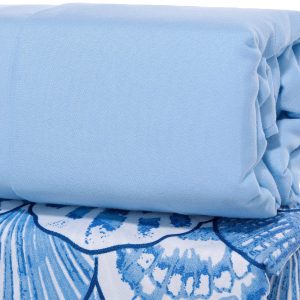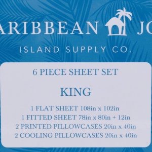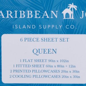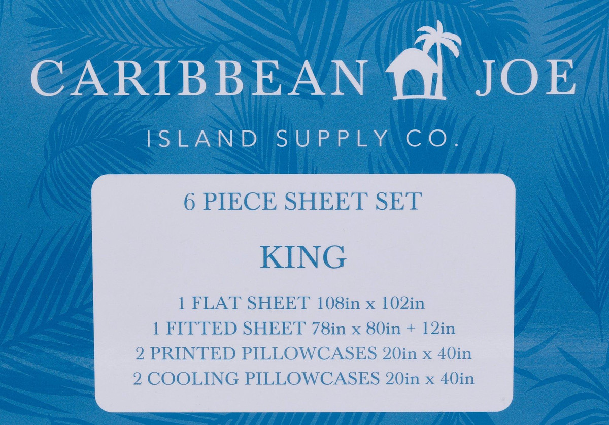 Bring the coast to your bedroom with this stylish and colorful sheet set by Caribbean Joe. Inspired by the beach, ocean, seaside, and shore this set features blue Shells! It includes a flat sheet, fitted sheet, 2 printed pillowcases, and 2 soild cooling pillowcases. Fabrication is 100% polyester. Fitted sheet pocket depth is 12 in.