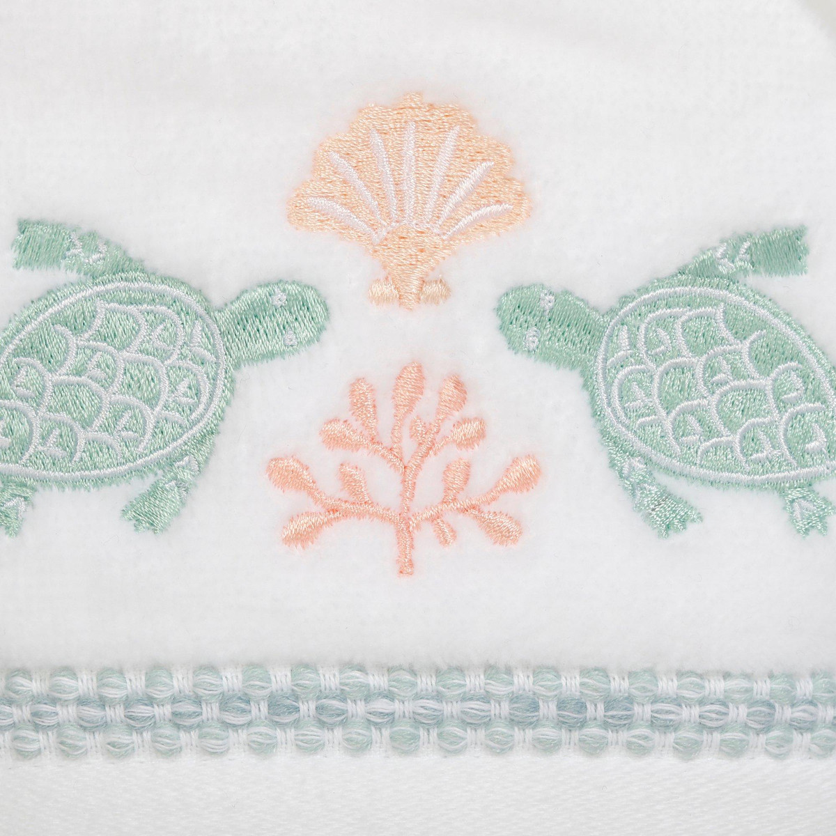 Caro Home 2 Pk Sea Turtle Embroidery Ultra Soft Hand Towels
