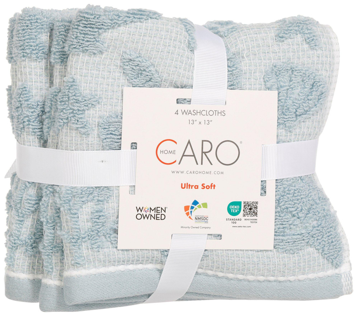 Bring a touch of coastal elegance to your home with a 4-pack of washcloths featuring an embossed pattern and matching border. Crafted from 100% premium cotton, they provide exceptional softness, absorbency, and long-lasting quality. Perfect for everyday use, they combine comfort with refined style. Fabrication is 100% cotton. Measures approximately 13 in x 13 in.