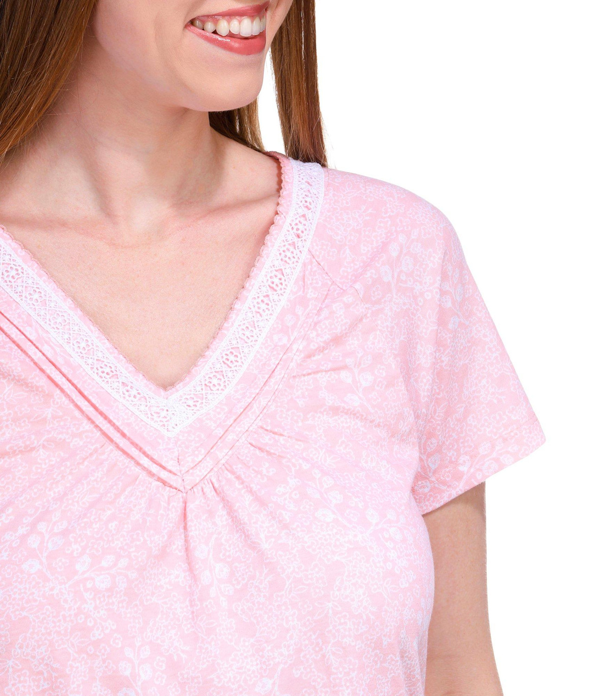 Introducing a delightful Short Sleeve Chemise, adorned with a charming floral print that adds a touch of elegance. The delicate lace trim enhances its sophisticated appeal, making it perfect for a restful night’s sleep or lounging in style. Crafted from soft, breathable fabric, this chemise ensures you stay comfortable all night long.