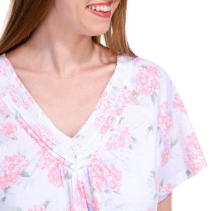 Introducing a delightful Short Sleeve Chemise, adorned with a charming floral print that adds a touch of elegance. The delicate lace trim enhances its sophisticated appeal, making it perfect for a restful night’s sleep or lounging in style. Crafted from soft, breathable fabric, this chemise ensures you stay comfortable all night long.
