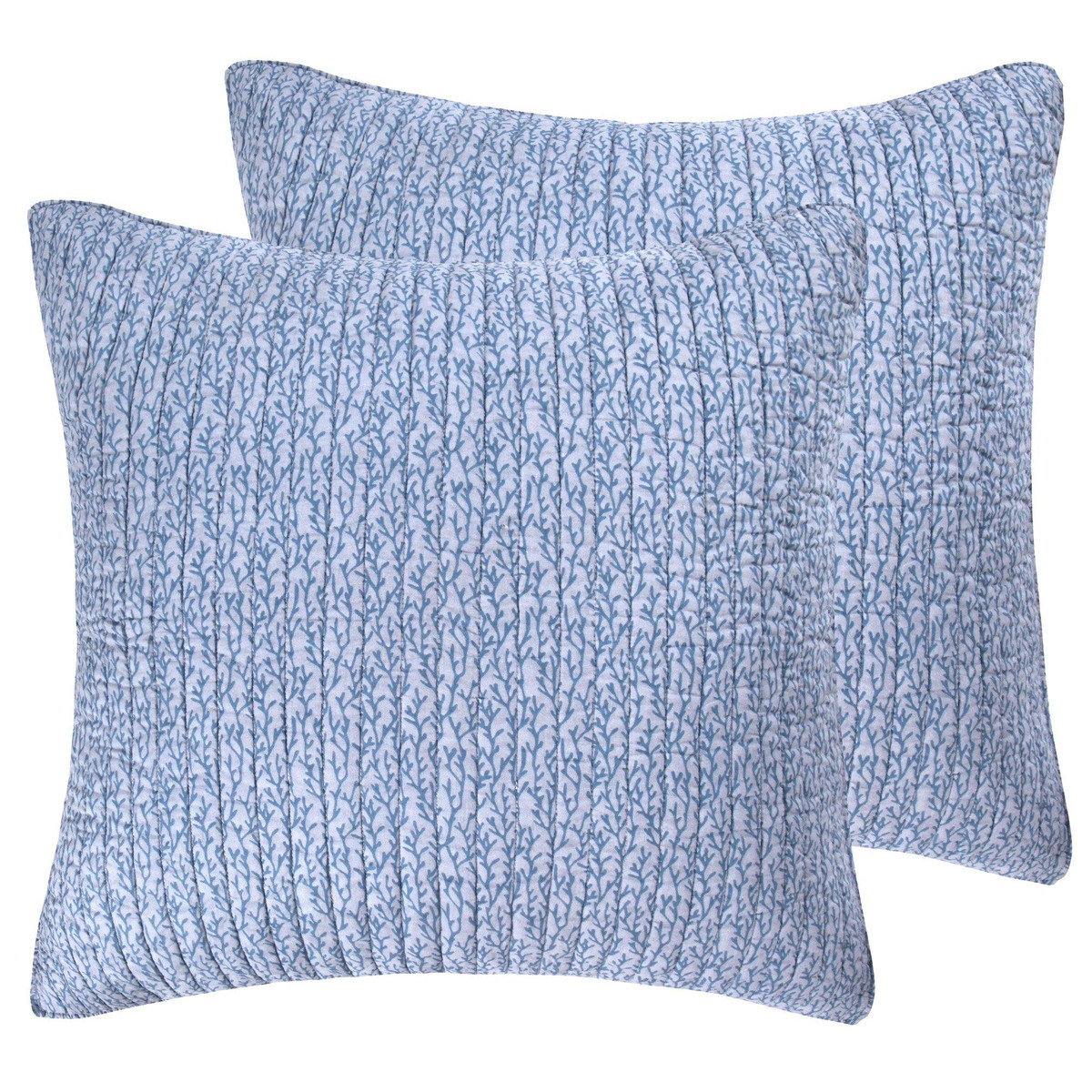 The Cerralvo Quilted Set of 2 Euro Shams 26x26in. by Levtex Home is inspired by a relaxing tropical vacation. Offered in blue, this design will immediately transform your bedroom. These shams feature intricate repeating coral design in varying shades of blue. The Euro Shams (26x26in.) are quilted with a cotton rich filler and is machine washable. Pillow inners are not included. Enjoy for years to come!