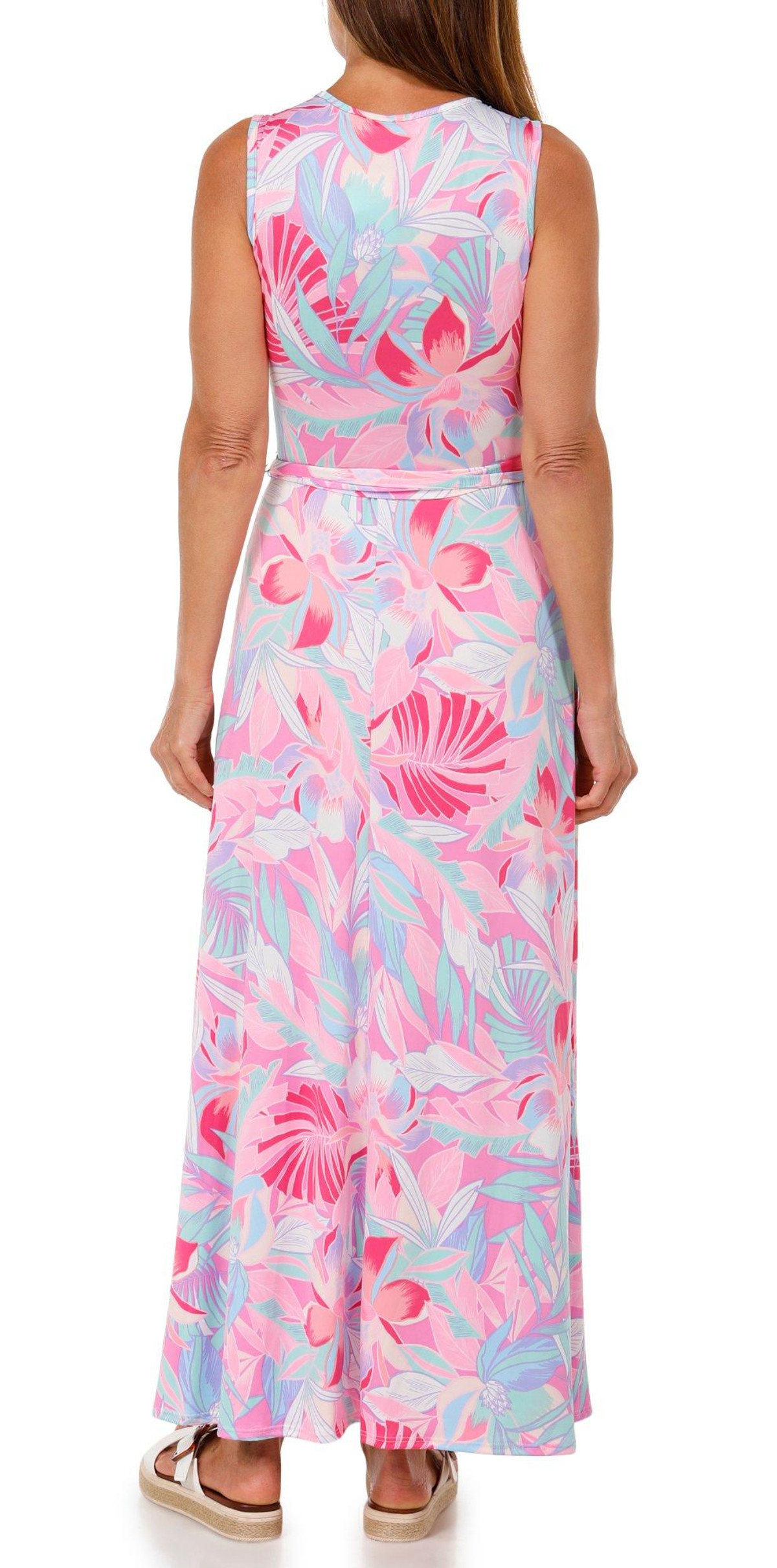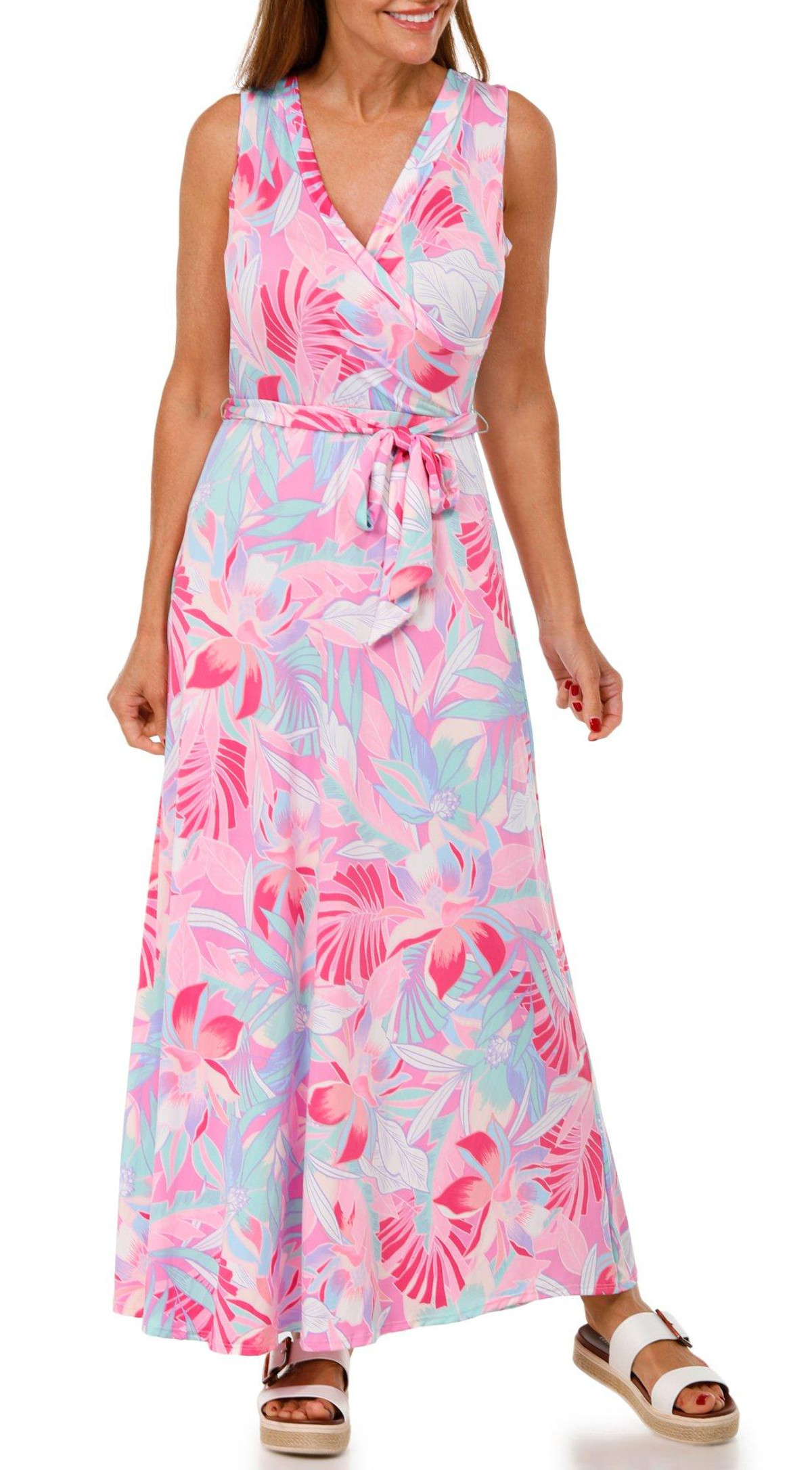 Embrace effortless elegance in this Women’s Sleeveless Wrap Botanical Maxi Dress. Featuring a lush botanical print, flattering V-neckline, and a classic wrap design, this maxi-length dress flows beautifully for any occasion, from garden parties to beach strolls.