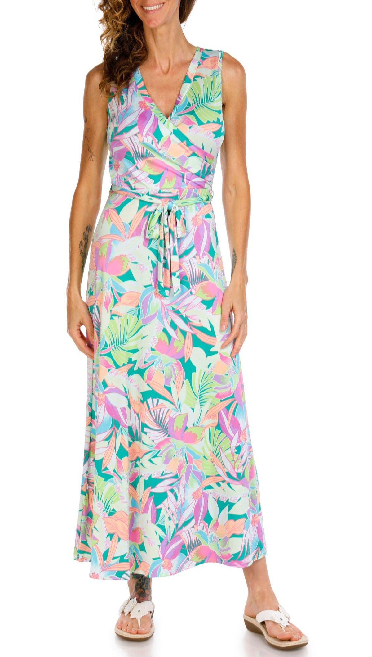 Embrace effortless elegance in this Women’s Sleeveless Wrap Maxi Dress. Featuring a colorful botanical print, flattering V-neckline, and a classic wrap design, this maxi-length dress flows beautifully for any occasion, from garden parties to beach strolls.