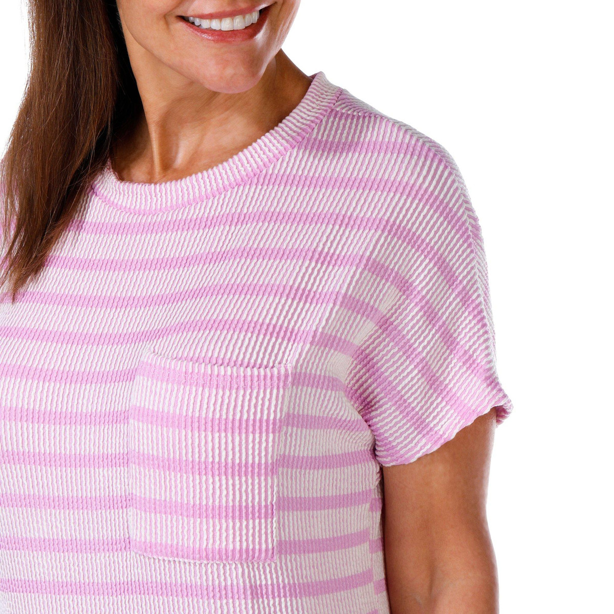 C'EST LA VIE Womens Striped Short Sleeve Rib T-Shirt Dress