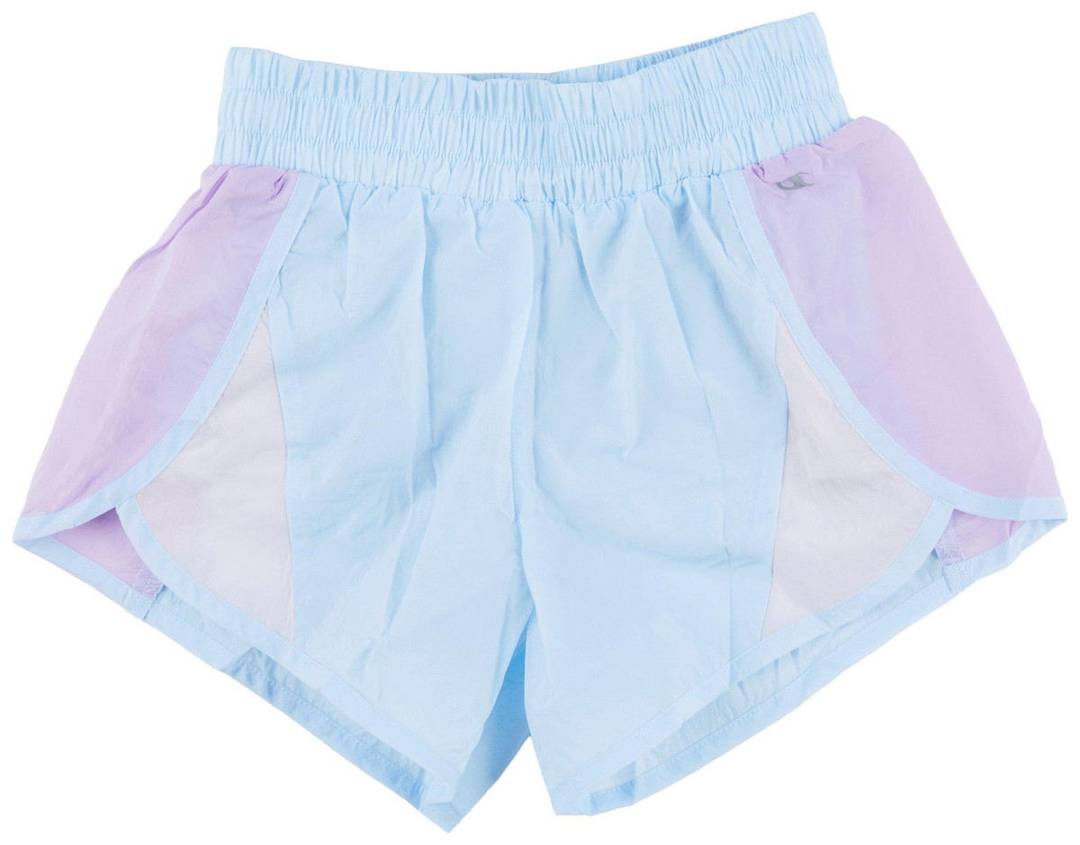 Bright, bold, and built for movementthese woven shorts feature a sporty colorblock design in light blue and pastel purple. With a comfy elastic waistband and lightweight, breathable fabric, theyre perfect for play, practice, or everyday adventures.