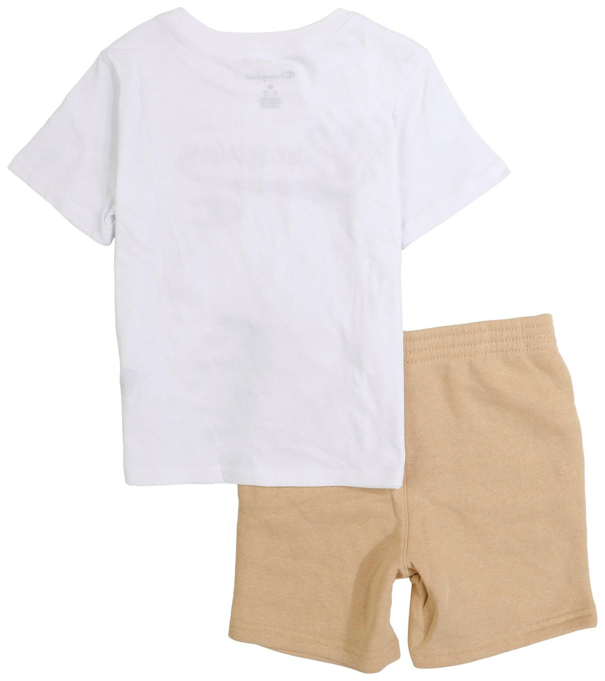 Dress your little one in comfort and style with this 2 Piece Toddler Boys Set. This set includes a fun graphic tee that adds a playful touch to his outfit. Paired with cloth shorts featuring double side slip pockets, it ensures practicality and ease for active days.