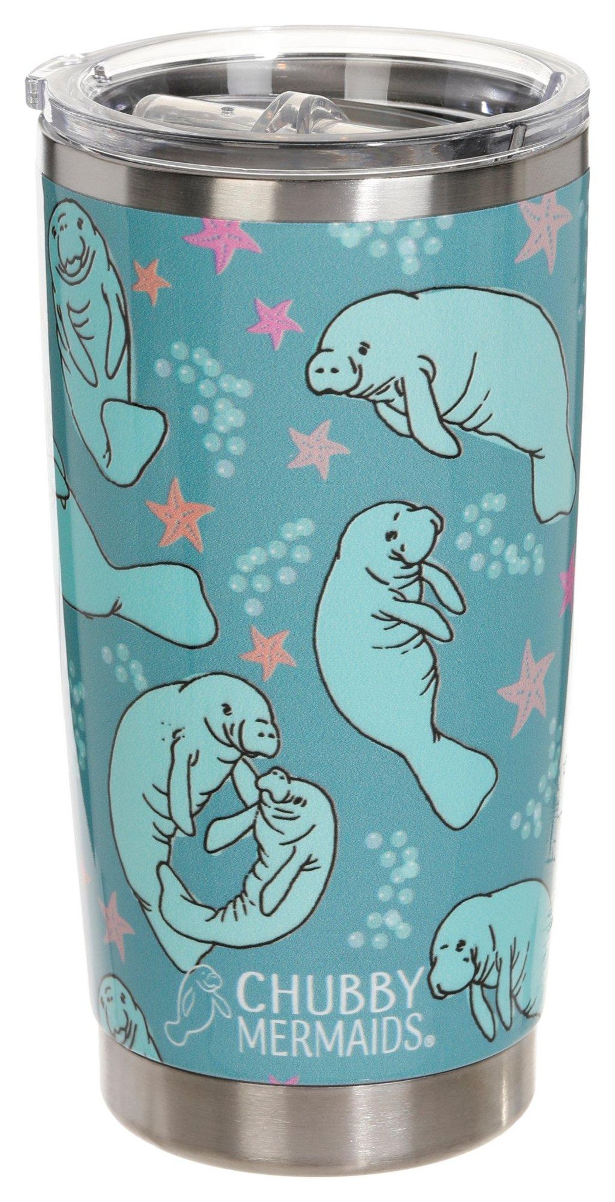 This vibrant Chubby Mermaid Manatoss cup is durable and reliable with a splash of artwork that makes it stylish as well. This travel tumbler keeps drinks hot or cold longer and reduces condensation. Spill-proof lid included. This cup is BPA free and can hold 20 oz.