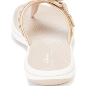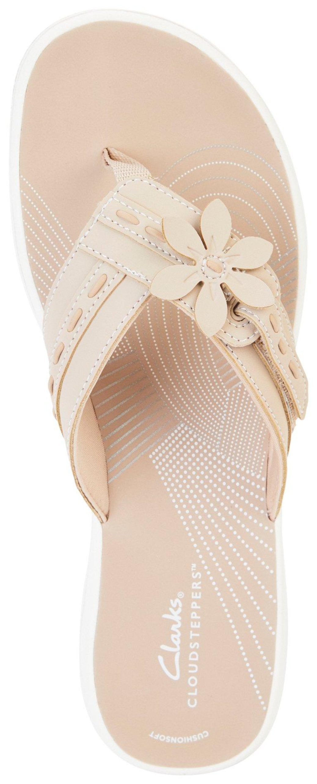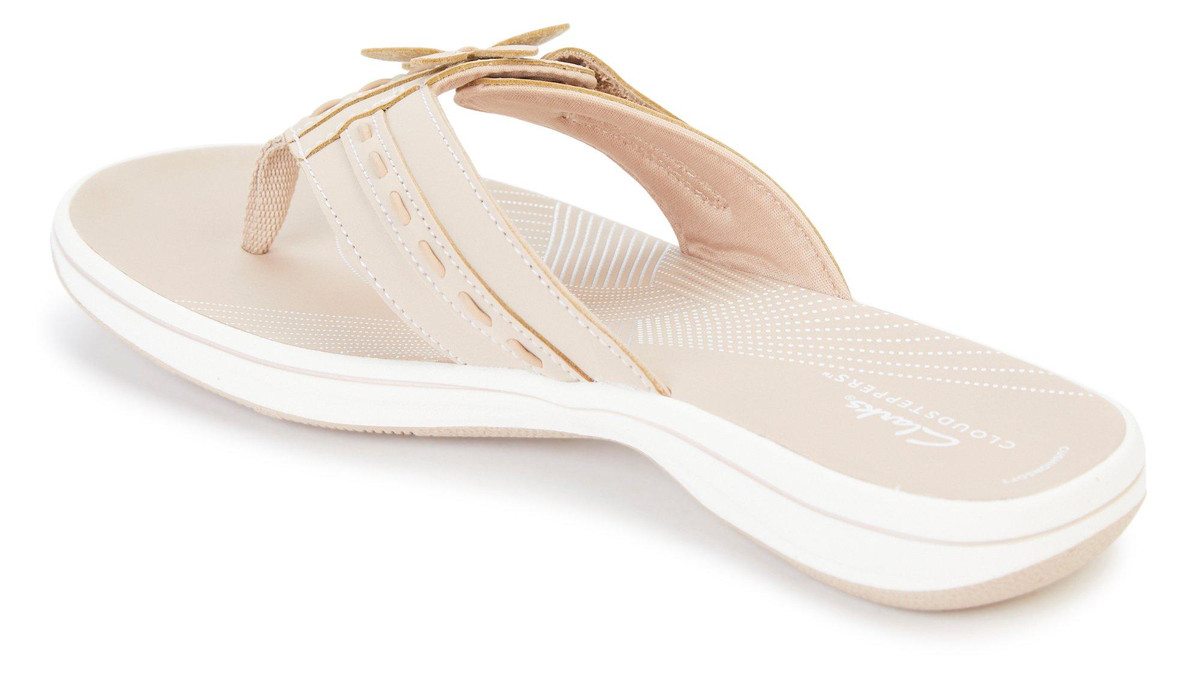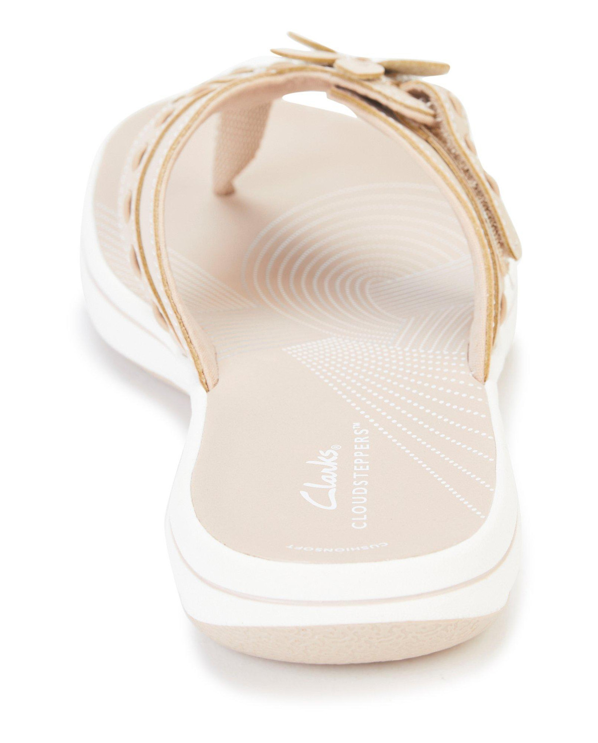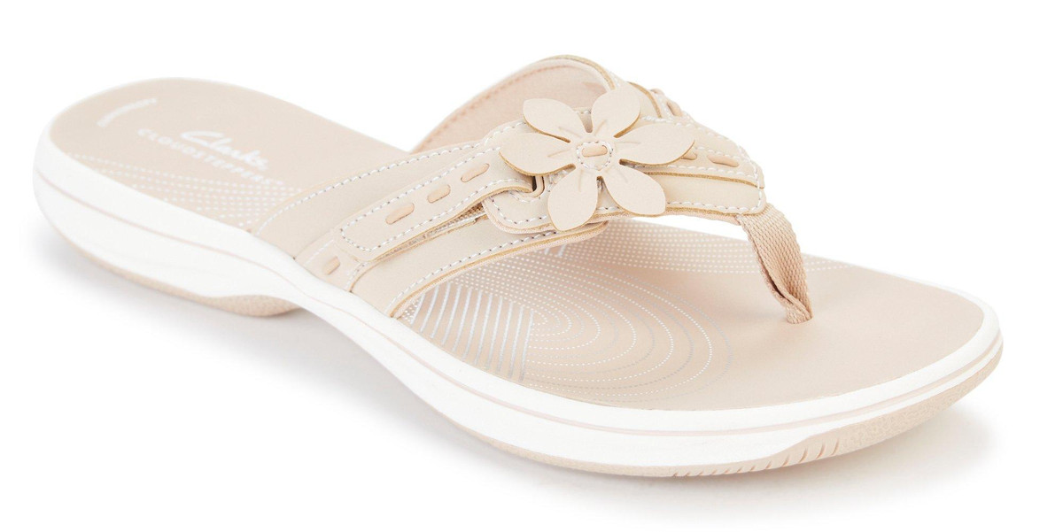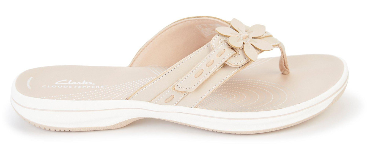 Perfect your look with the Clarks Breeze Opal sandal. The hook & loop pair is elevated by floral detailing for a feminine flair. Finished off with a functional impact-absorbing Cushion Soft footbed and a durable EVA sole.