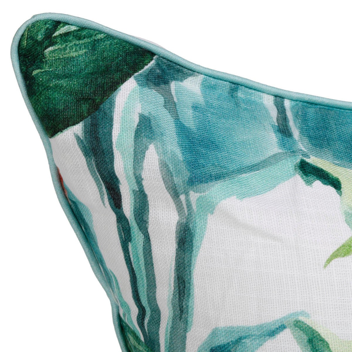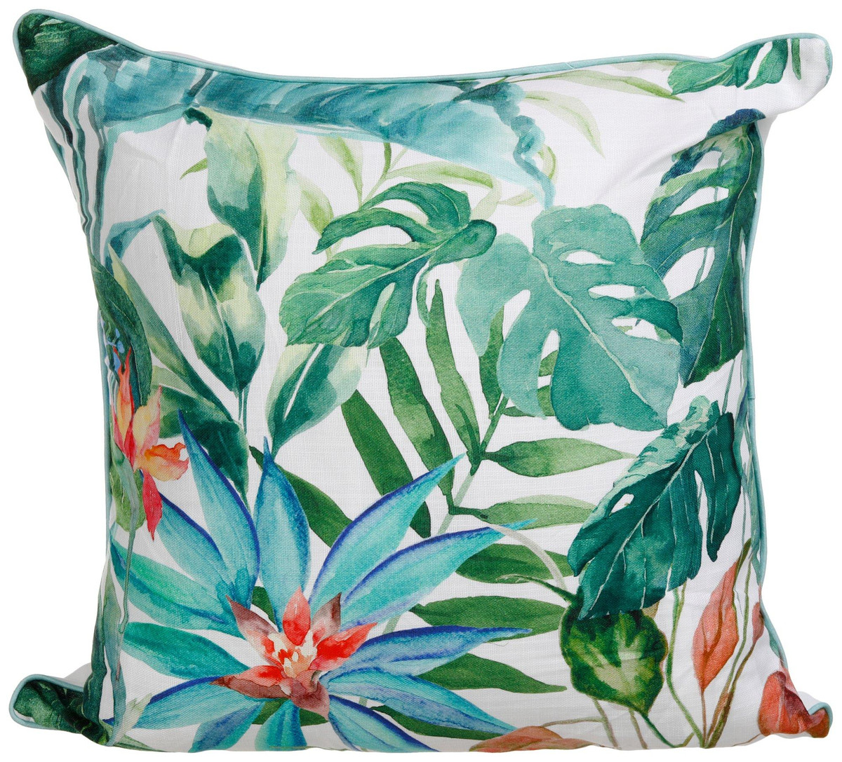 Liven up any space in your home with this chic and comfortable 18 in Nicoya Breeze Decorative Pillow! It features a stylish tropical print design, a solid reverse, and a hidden zipper closure. Measures approximately 18 in x 18 in.