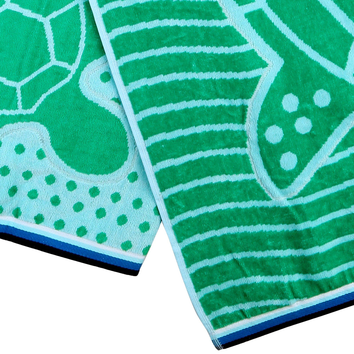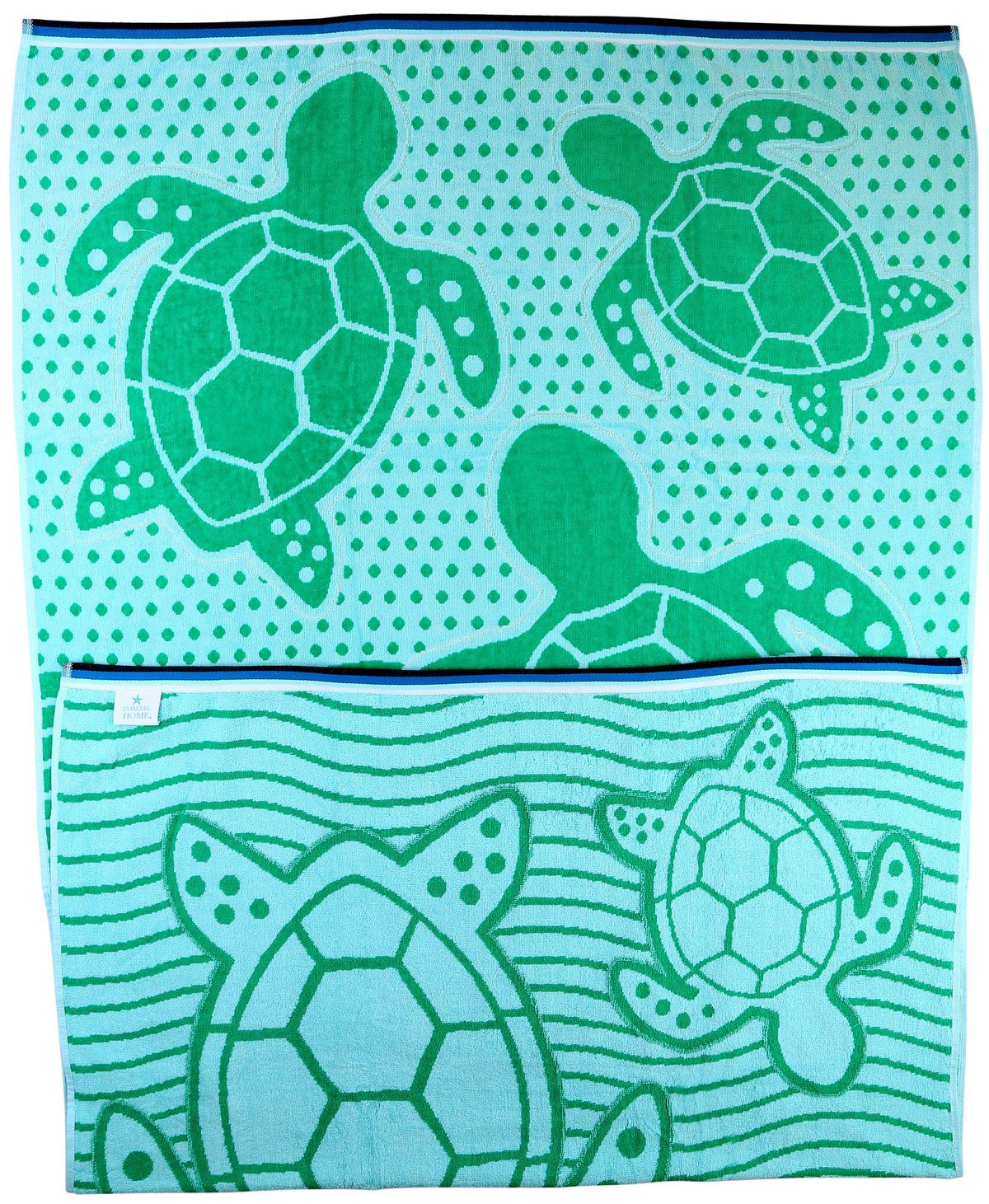 Coastal Home adds a touch of coastal style to your home decoration. This beach towel features a fun print design and striped trim. Measures 68in. L x 36in. W. Fabrication is 70% cotton and 30% viscose.