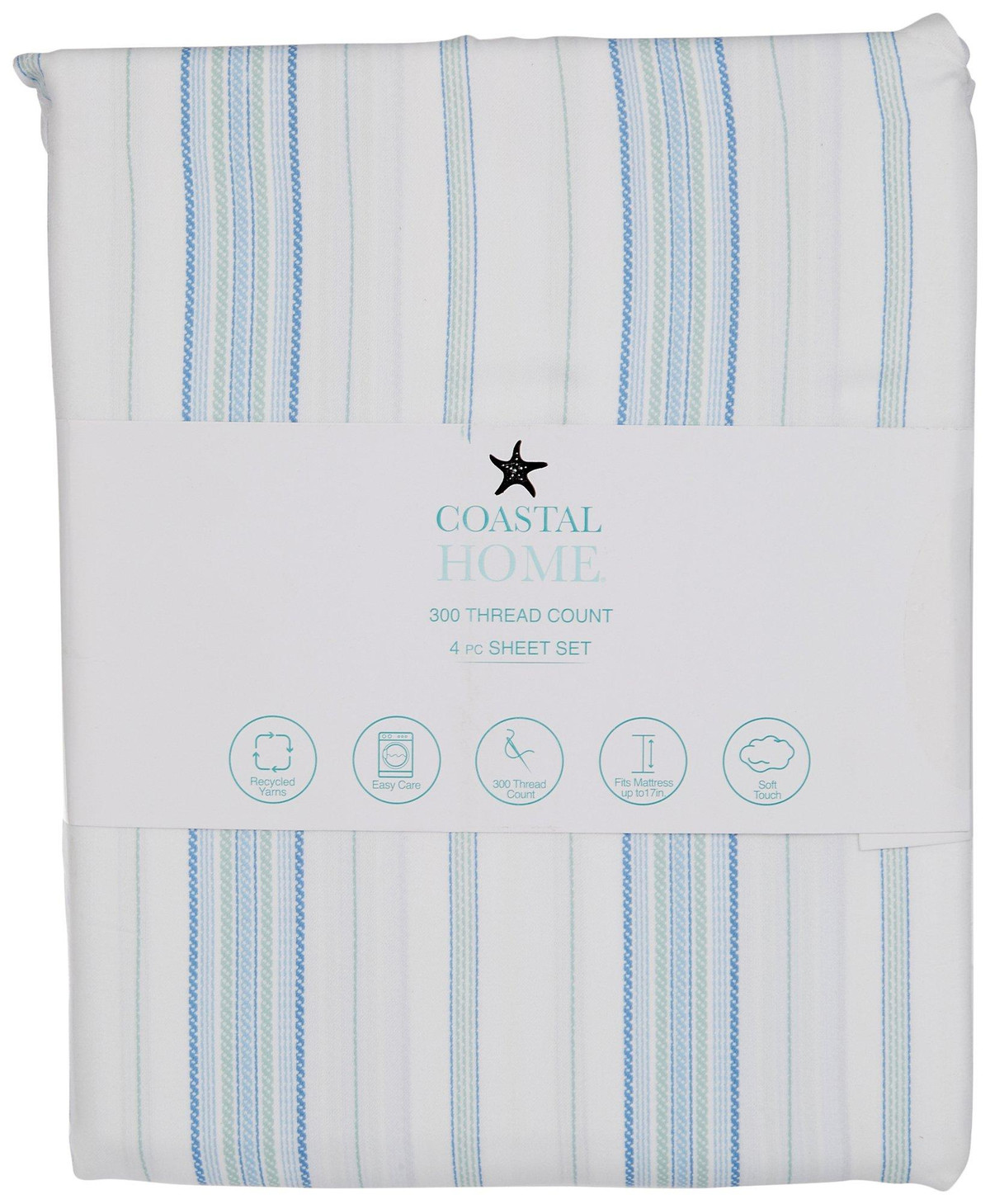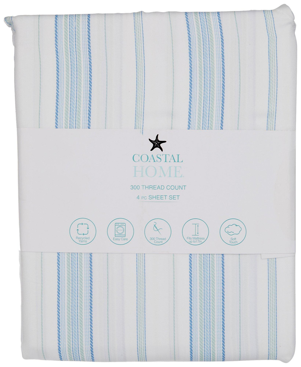 Coastal Home 4 Pc Spiral Stripe Sheet Set