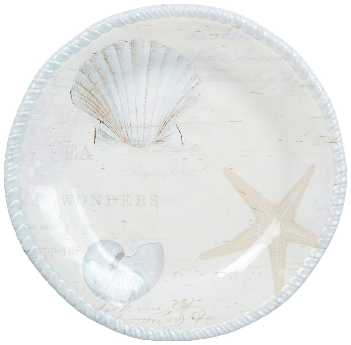 Enhance your dining experience with the 4-Pack Shell Print Dinner Plates from Coastal Home. Measuring 11 inches by 11 inches, these plates feature a charming shell design that brings a touch of the seaside to your table. Perfect for both everyday meals and special occasions, these plates combine functionality with coastal elegance. Add a splash of ocean-inspired style to your dining collection with these beautiful and durable dinner plates.