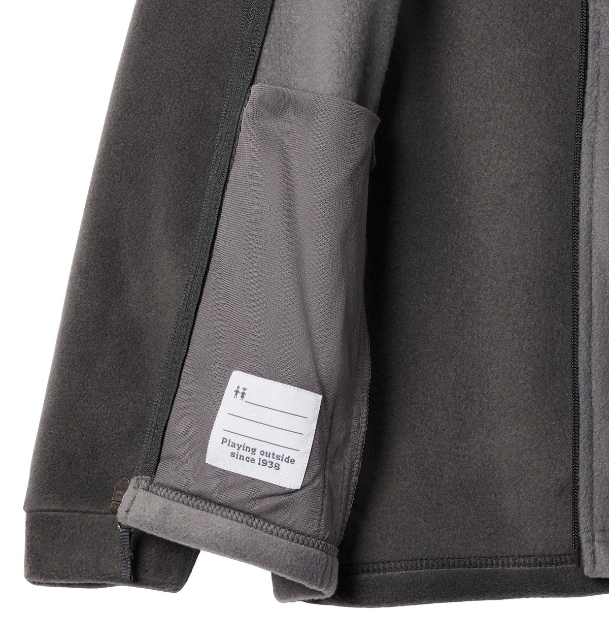 Keep each adventure going strong with this Steens Mountain pullover jacket! It features warm fleece fabric, a solid design, zipper front, two zippered security pockets, elastic cuffs, a logo on the chest, and mock neckline.