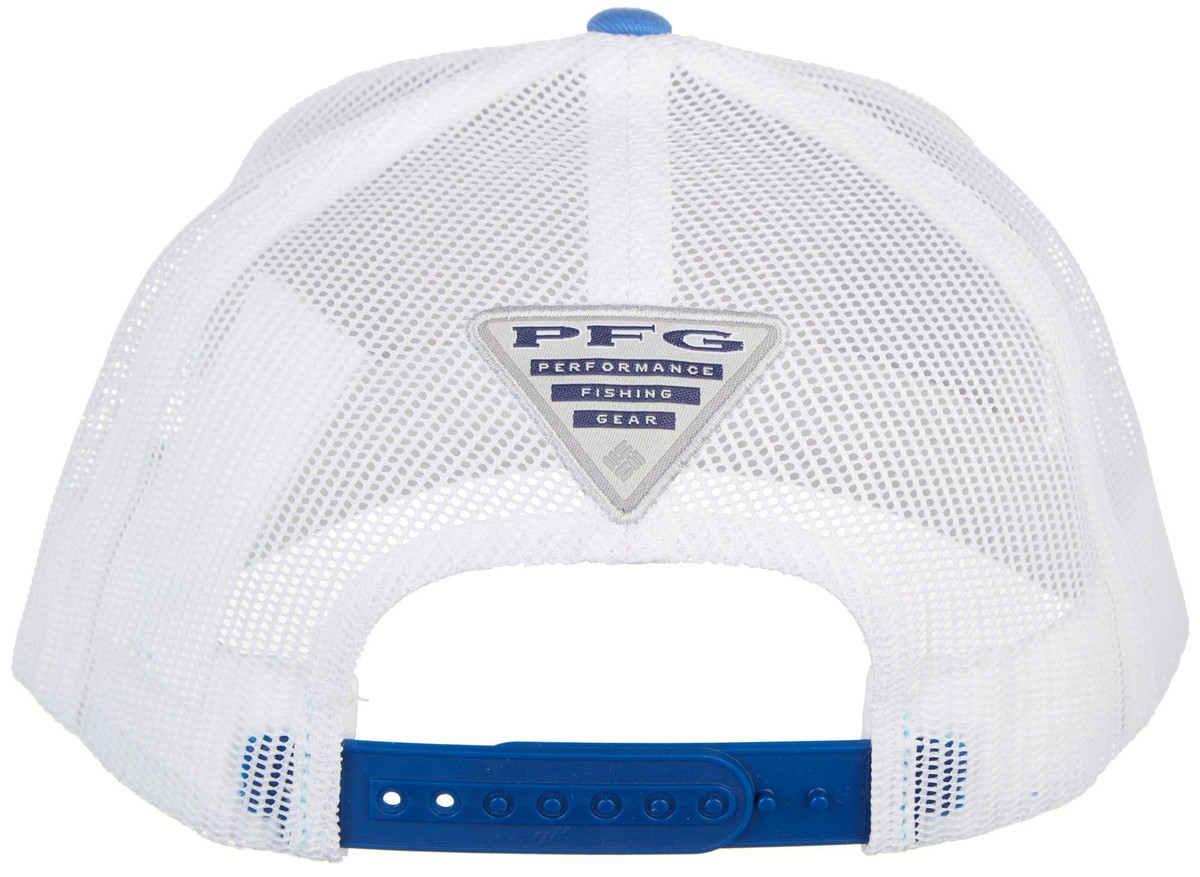 Keep each adventure going strong with this PFG Mesh hat by Columbia. Whether you’re on the boat or running errands, this stylish cap is the perfect accessory, featuring durable cotton fabric, a patriotic American fish flag patch on the front, PFG triangle patch on the back, a breathable mesh back, and adjustable snap back for a personal fit.