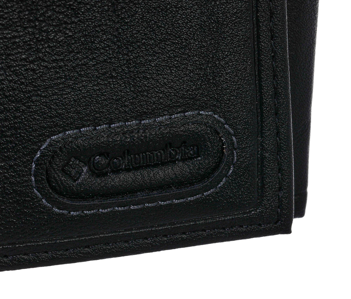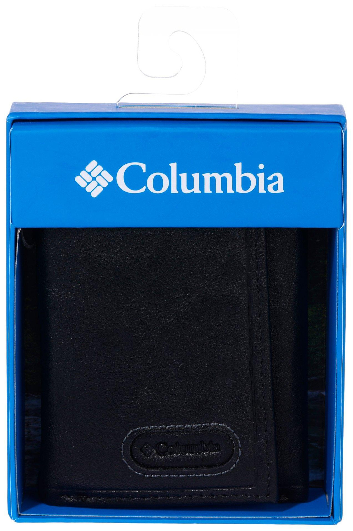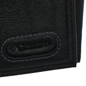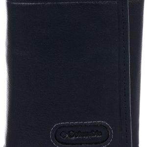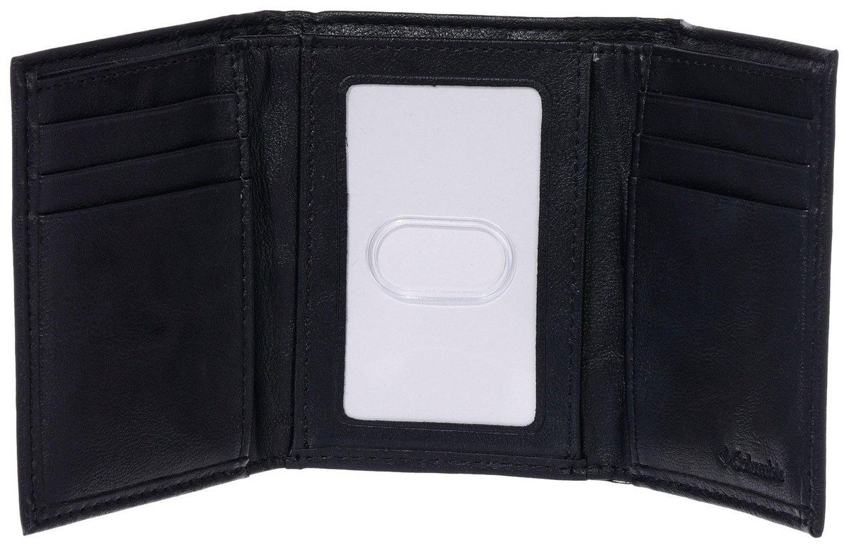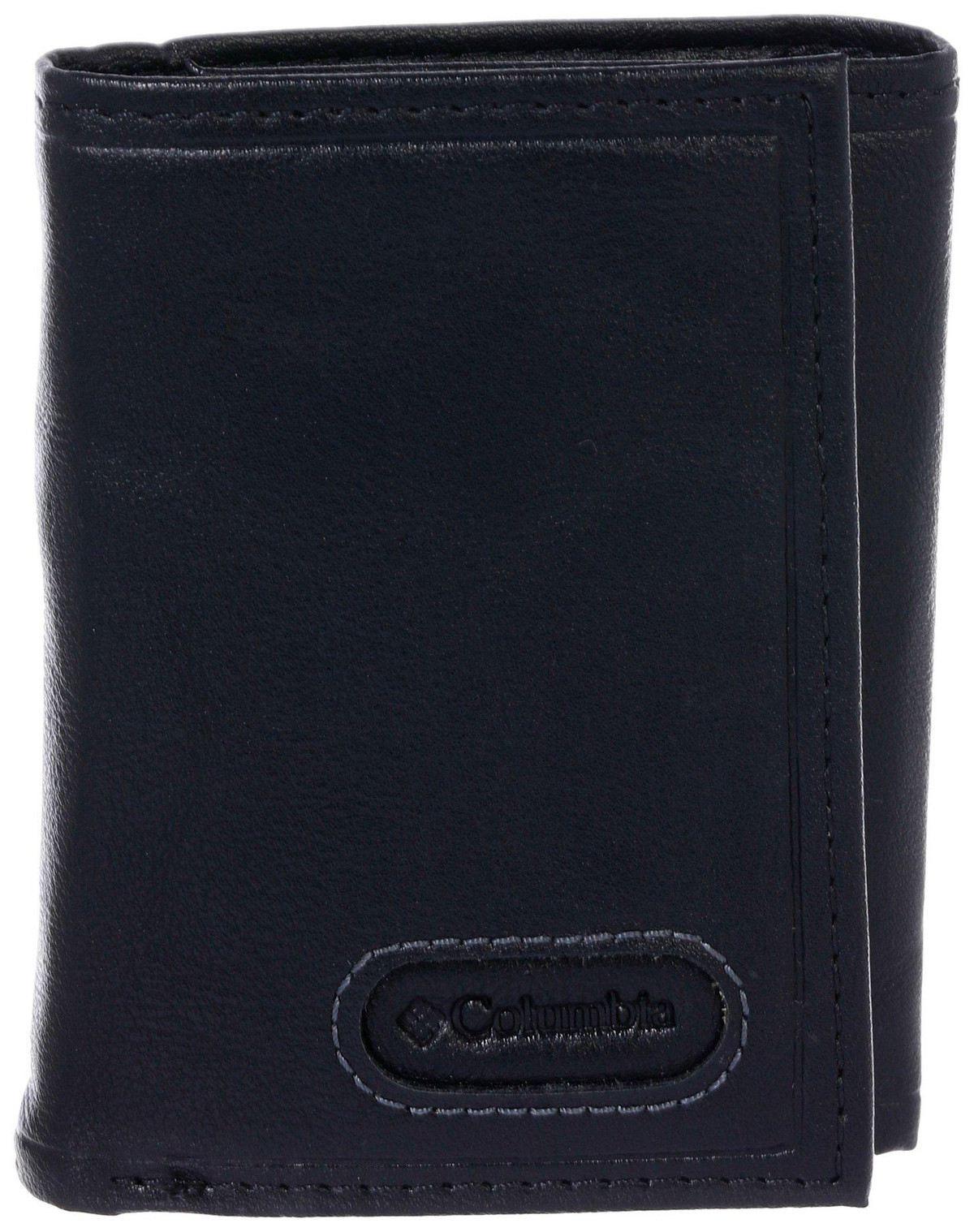 This Mens Sahara Trifold Wallet features a solid color design with heavy edge stitching on grainy leather, a trifold silhouette, a front embossed brand, slim profile, and RFID-blocking technology to help protect personal information from identity theft. Contains one ID window, 6 interior credit card slots, 2 slip pockets, and a currency compartment. Dimensions: 4.25 inches x 4.5 inches.