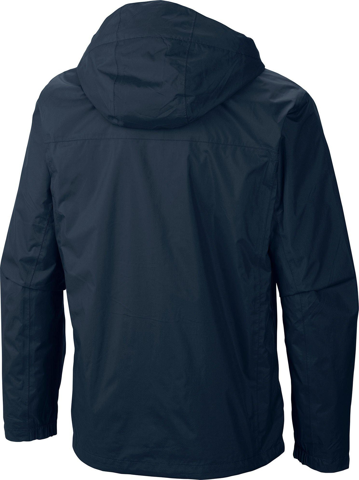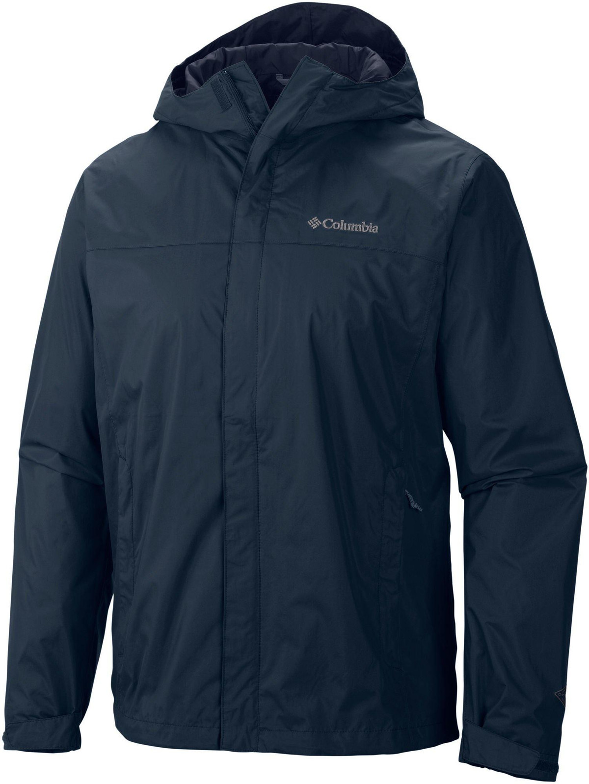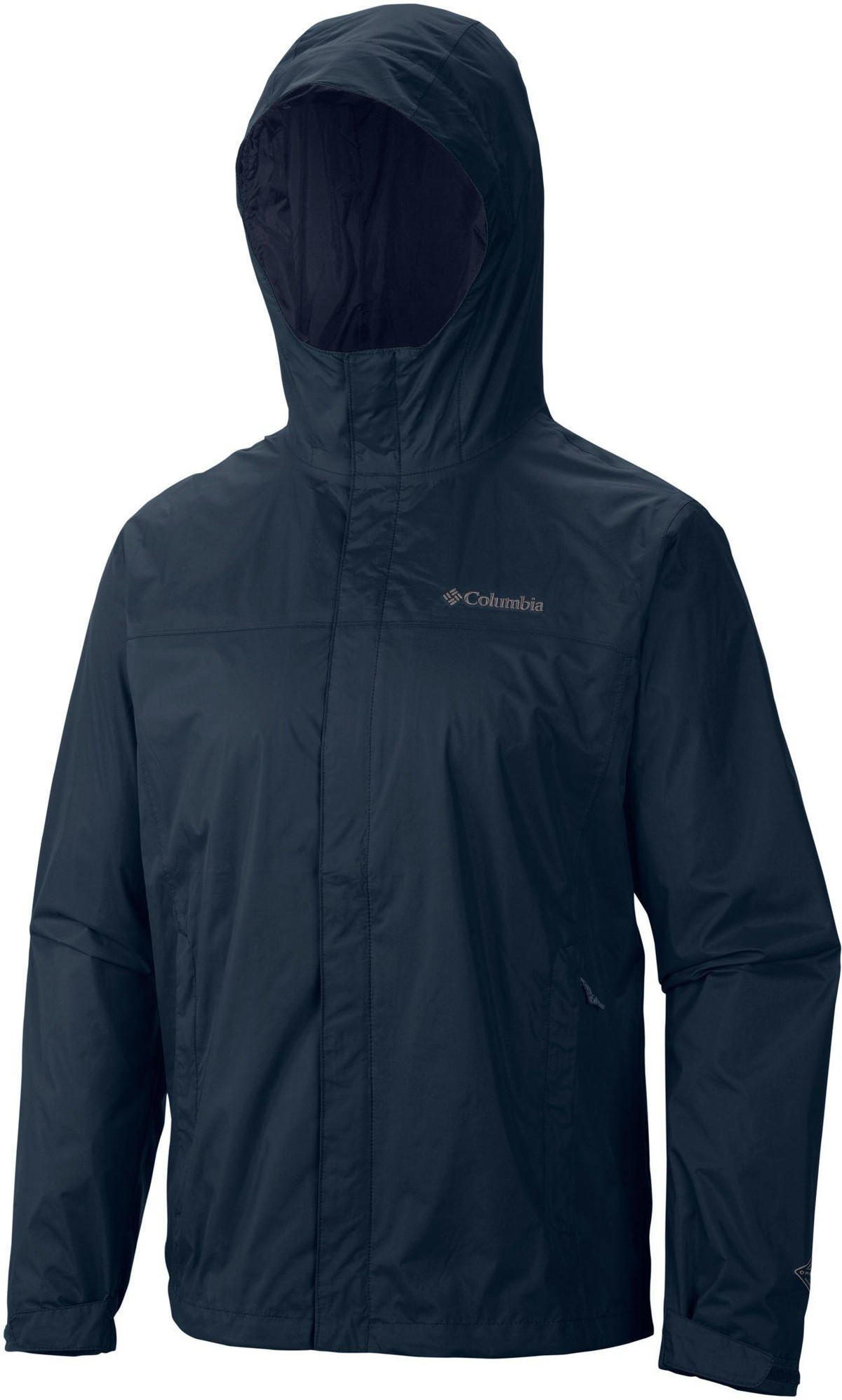 This jacket from Columbia features a solid color design on lightweight waterproof fabric, full front zipper, a stowaway hood, two front zipper pockets, adjustable sleeves, and has warm and wind breaking capabilities and is great for windy cold days. The top length measures approximately 29 in. Fabrication 100% nylon.