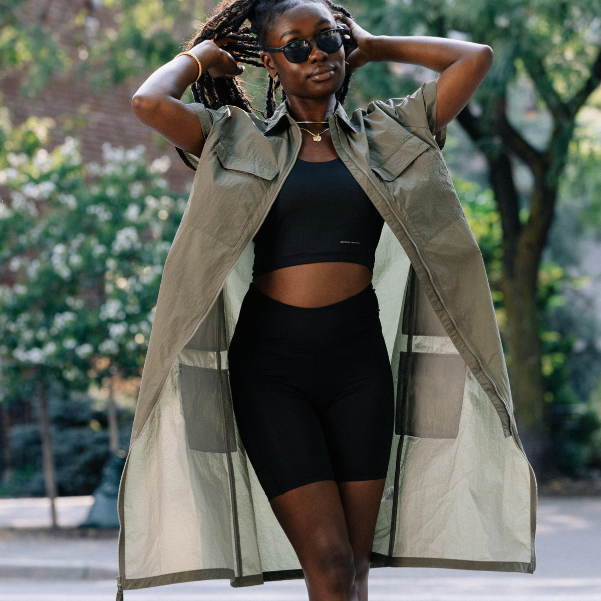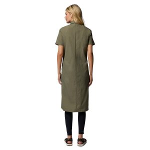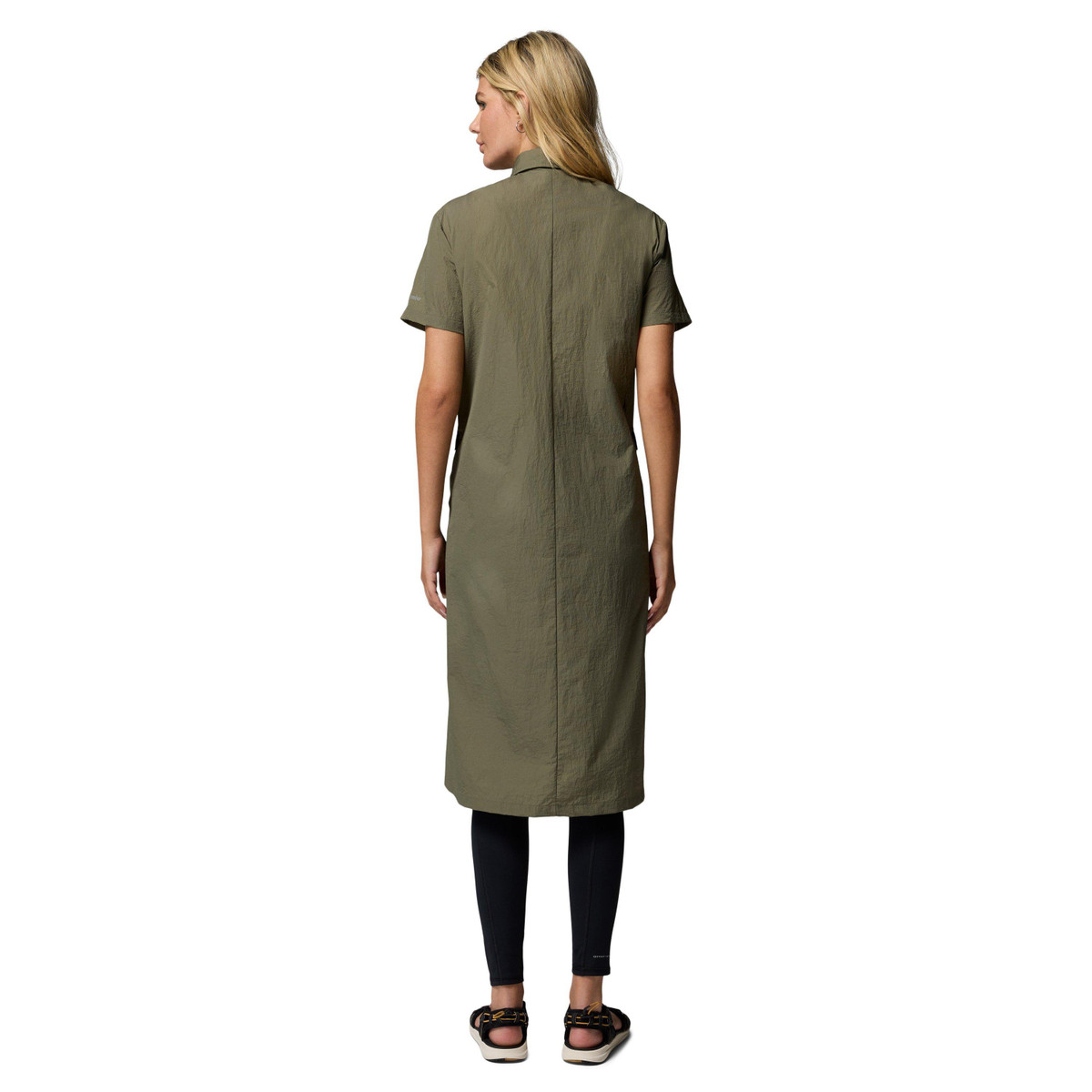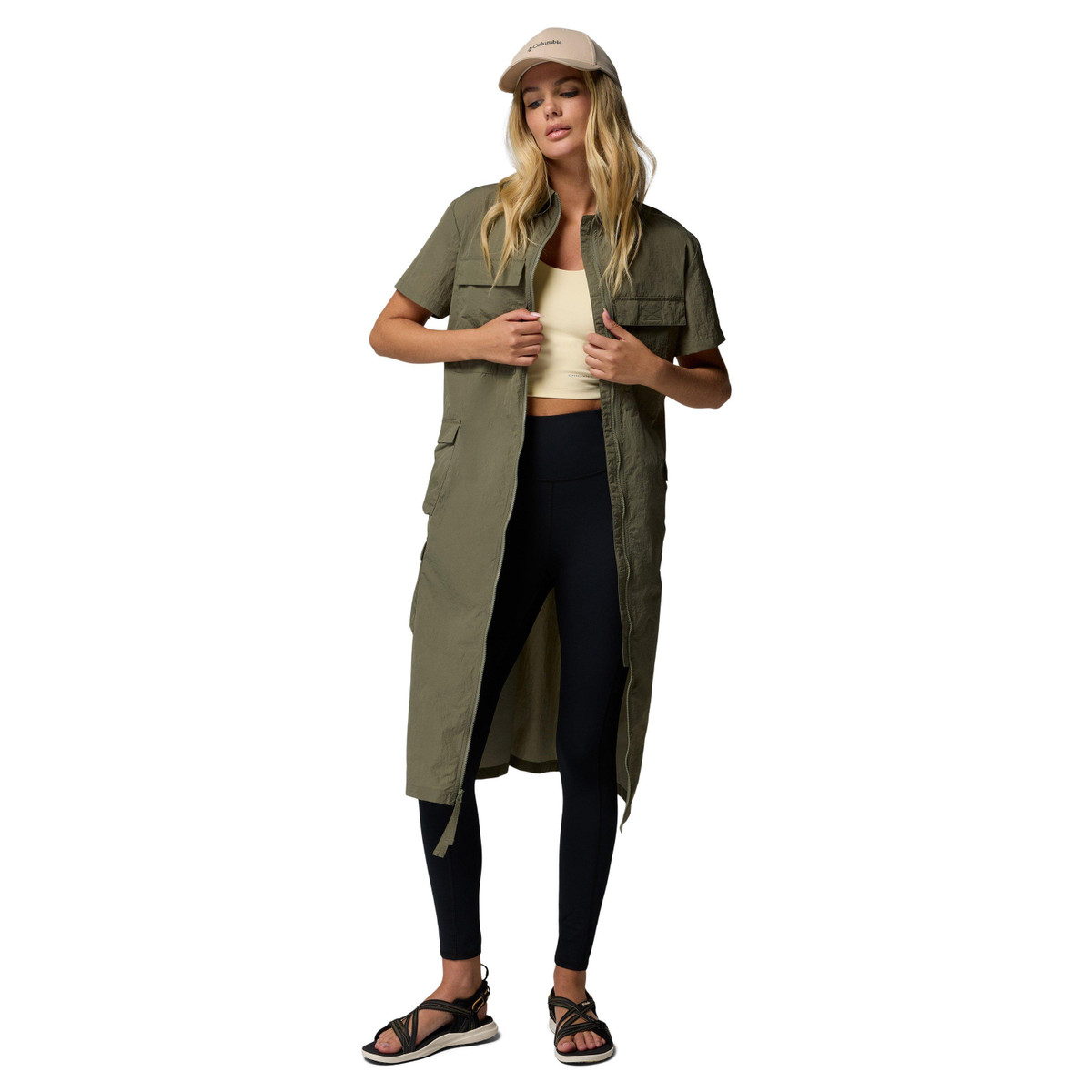 Made from lightweight, water-resistant nylon, the Columbia Elevated View Utility dress has pockets galore. It has a streamlined and breezy feel with a hint of polish for everyday wear. Features Omni-Shield Release advanced repellency, point collar, 2-way front zipper, easy reach zzipper pull, pockets with hook-and-loop closures. 90% nylon, 10% polyester. 46 inches length.