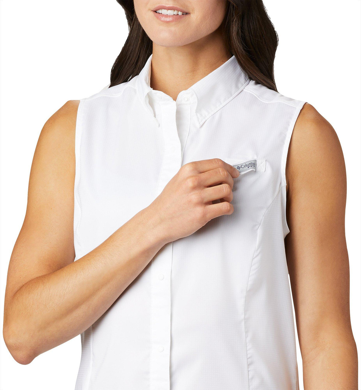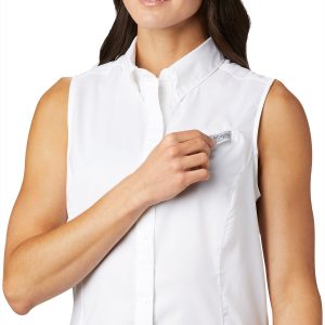 Enjoy your outdoors passion with comfort & style with the PFG Tamiami Sleeveless Shirt. It features Omni-Wick and Omni-Shade technologies with UPF 40 protection, a mesh-lined back venting panel, and a solid color design that allows for effortless matching. Measures approximately 25 in.