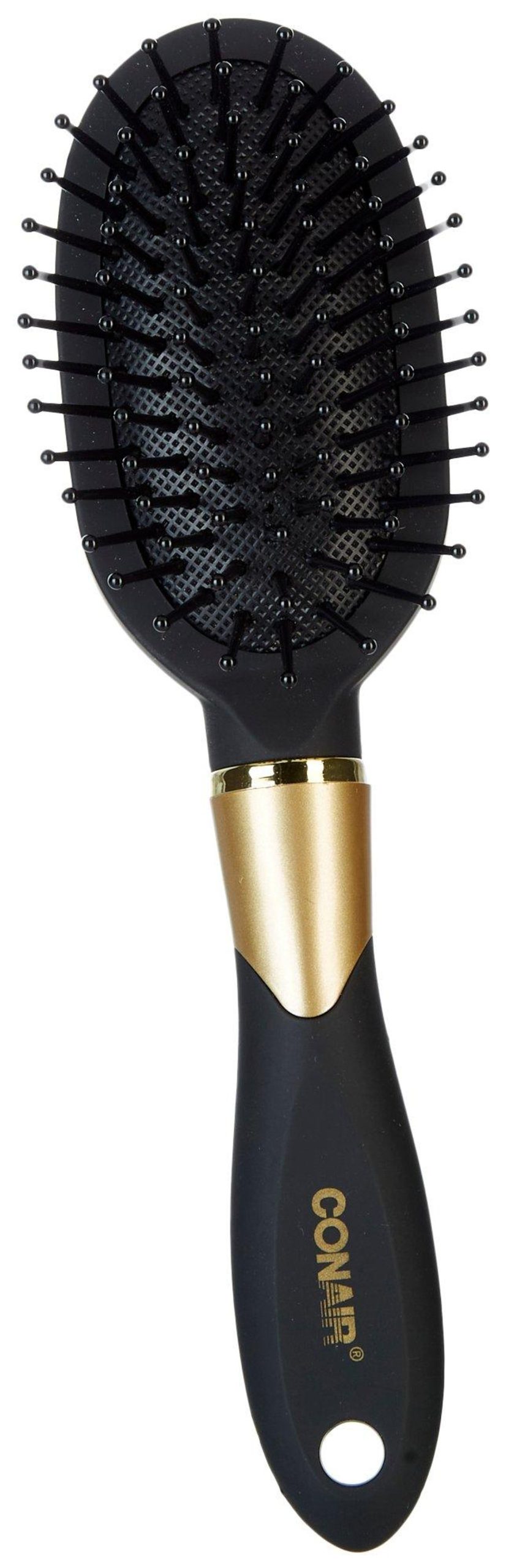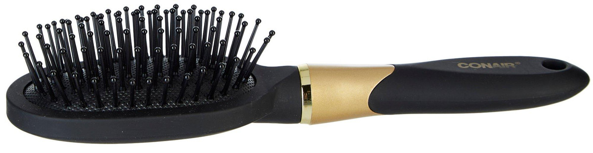 This Velvet Touch Hair Brush is ideal for all hair lengths with a paddle shape, a flexible cushion base, and ball-tipped nylon bristles that will not snag or pull hair. Compact size is perfect for travel. Measures approximately 7.5 in. L.