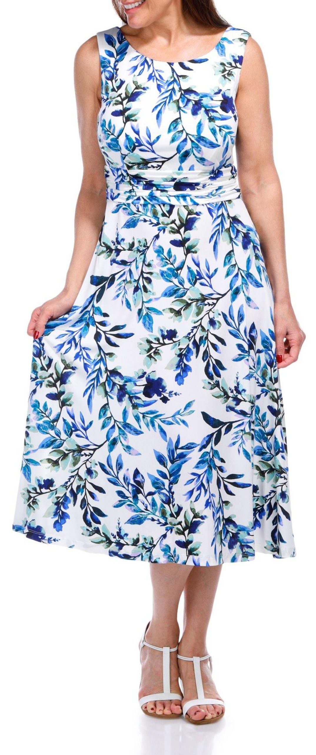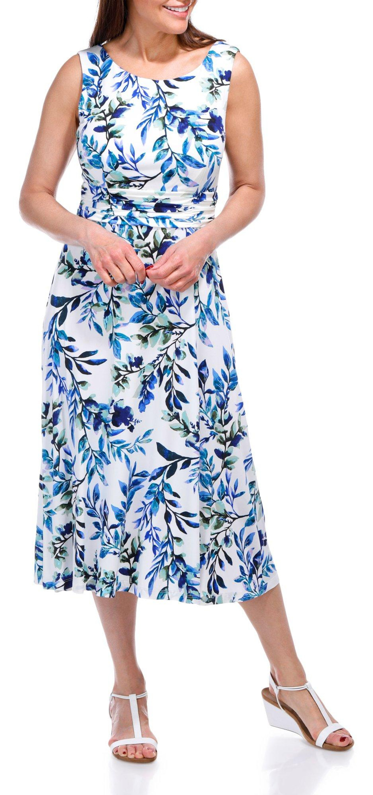 Connected Apparel Womens Sleeveless Floral Boat Neck Dress