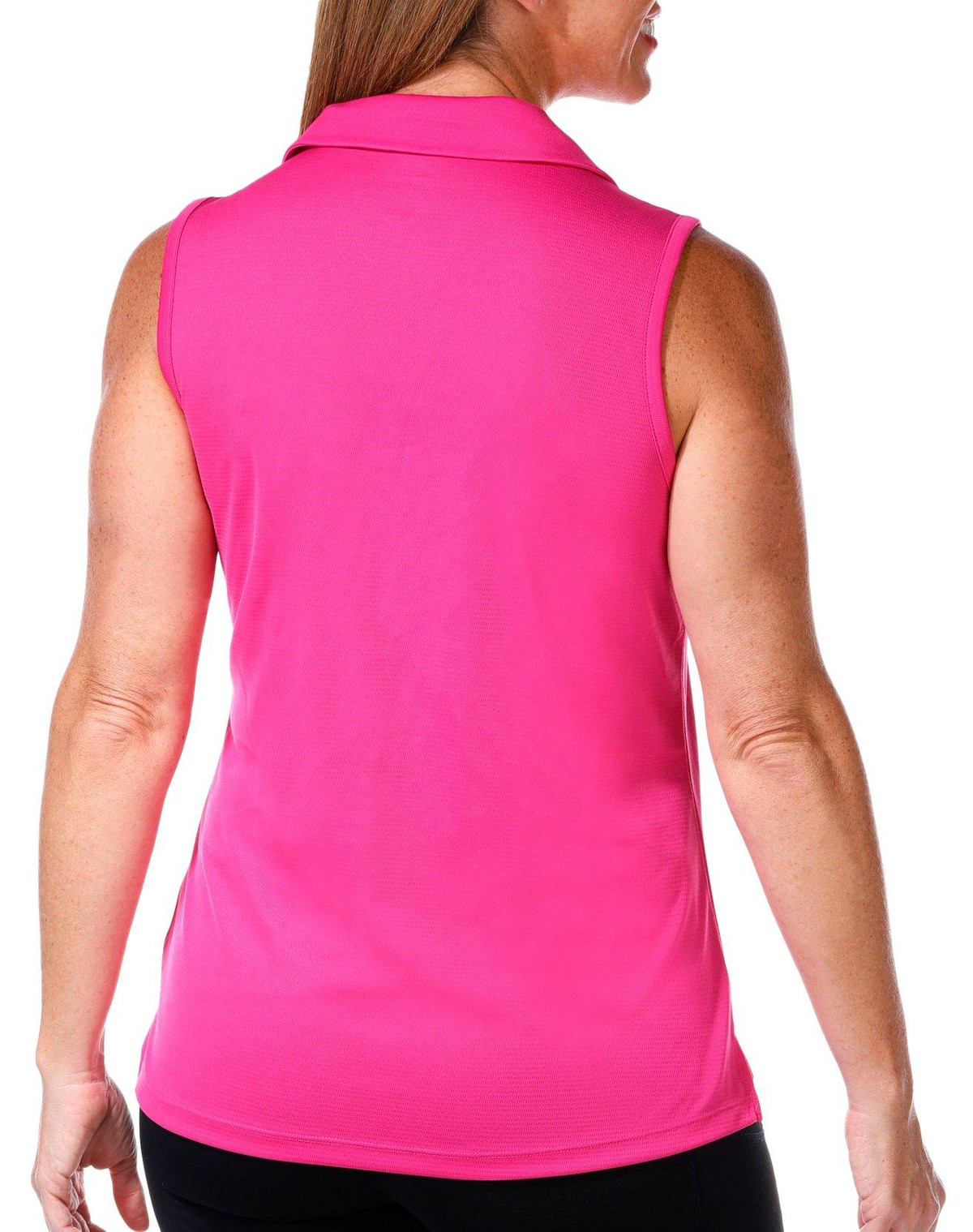 Hit the greens in style with this Sleeveless Top, perfect for golf enthusiasts. This solid color top offers built-in sun protection, ensuring you stay safe under the sun. The sleeveless design provides maximum freedom of movement, allowing you to swing with ease. Combining functionality and comfort, this top is a must-have for any golfer looking to stay cool and stylish on the course. Fabrication 100% polyester