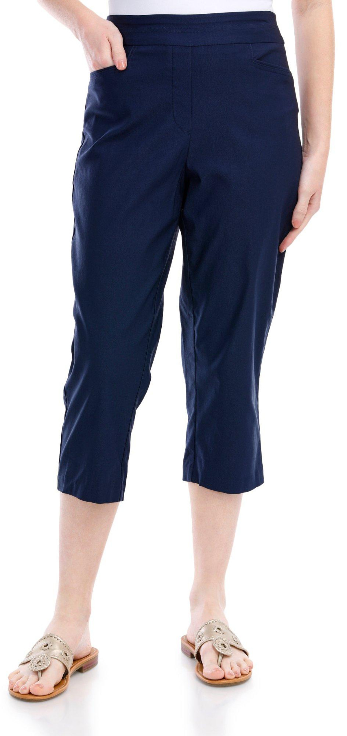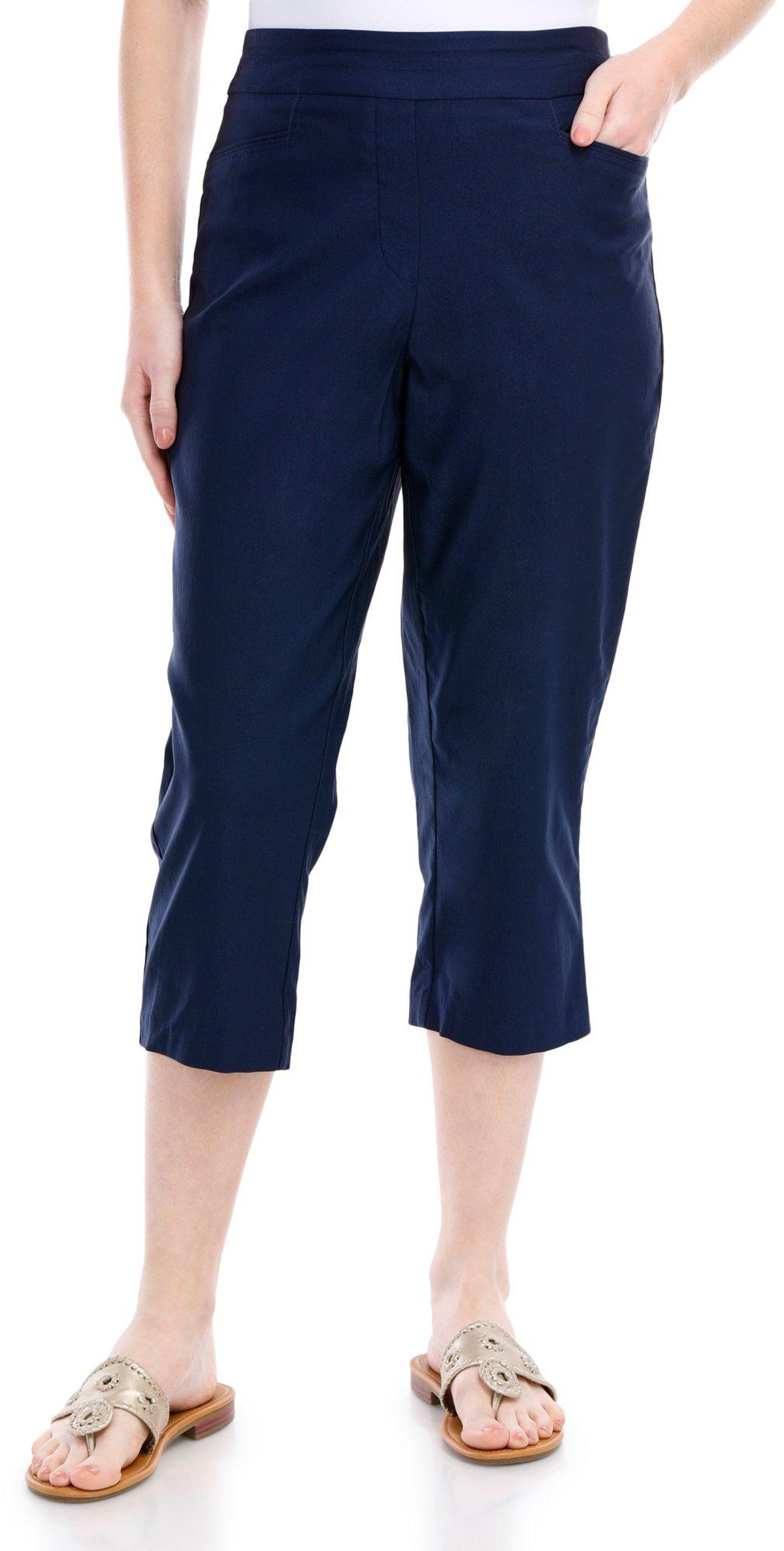 Our Women’s 21-inch Solid Slimming Capris offer a flattering, streamlined fit with added practicality. Featuring 2 front slip pockets and 2 back pockets, they combine style and function. The slimming design enhances your silhouette, making these capris perfect for both casual and active wear. Inseam measures approximately 21 inches. Fabrication 75% rayon, 22% nylon, 3% spandex.