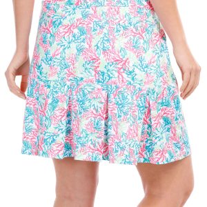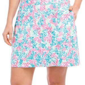 This women’s printed golf skort combines style and functionality, perfect for both the course and beyond. Made from comfortable, moisture-wicking fabric, it features a flattering fit and vibrant print. The built-in shorts provide added coverage and flexibility, while the sleek design offers a chic, sporty look. Pair it with your favorite golf top for a complete, performance-ready outfit. Inseam measures approximately 3 inches. Fabrication 92% polyester, 8% spandex.