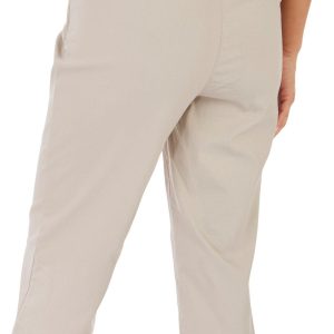 These pull-on capris feature a solid design on lightweight comfort stretch fabric, a hidden elastic waistband for optimal comfort, a slimming tummy panel, front pockets, two faux back pockets, and side split hemlines. Inseam measures approximately 19 inches. Fabrication 75% rayon, 22% nylon, 3% spandex.