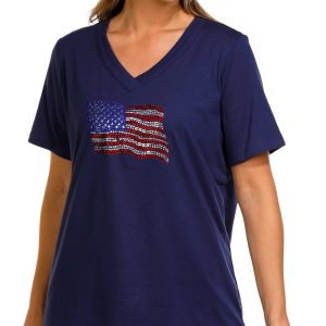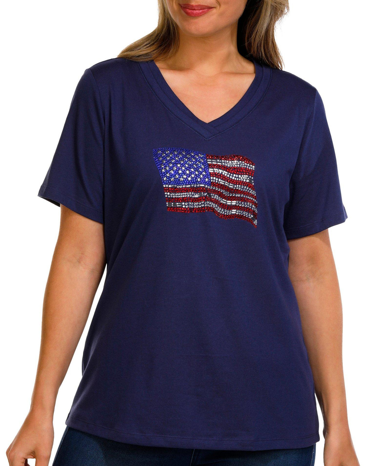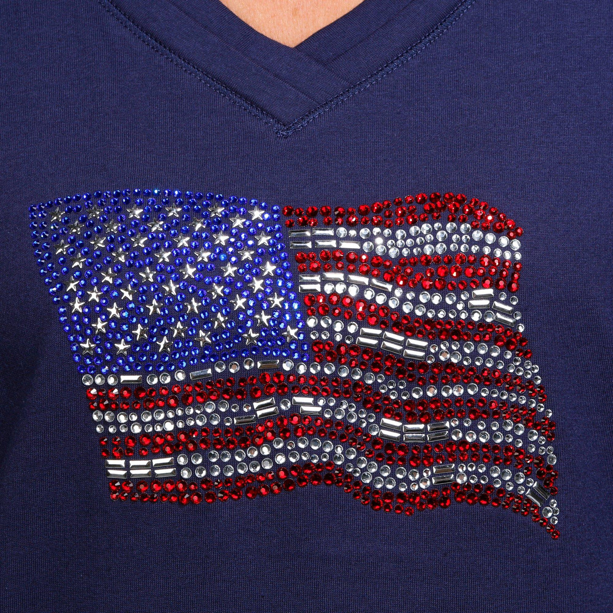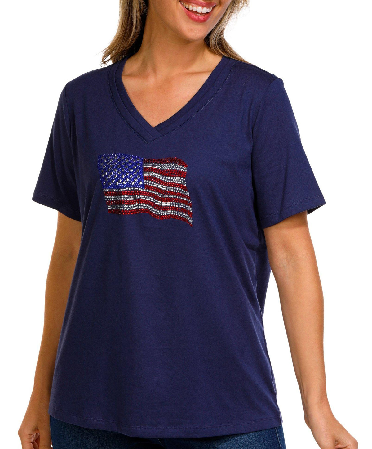 Coral Bay Petite Americana Rhinestone V-Neck Top