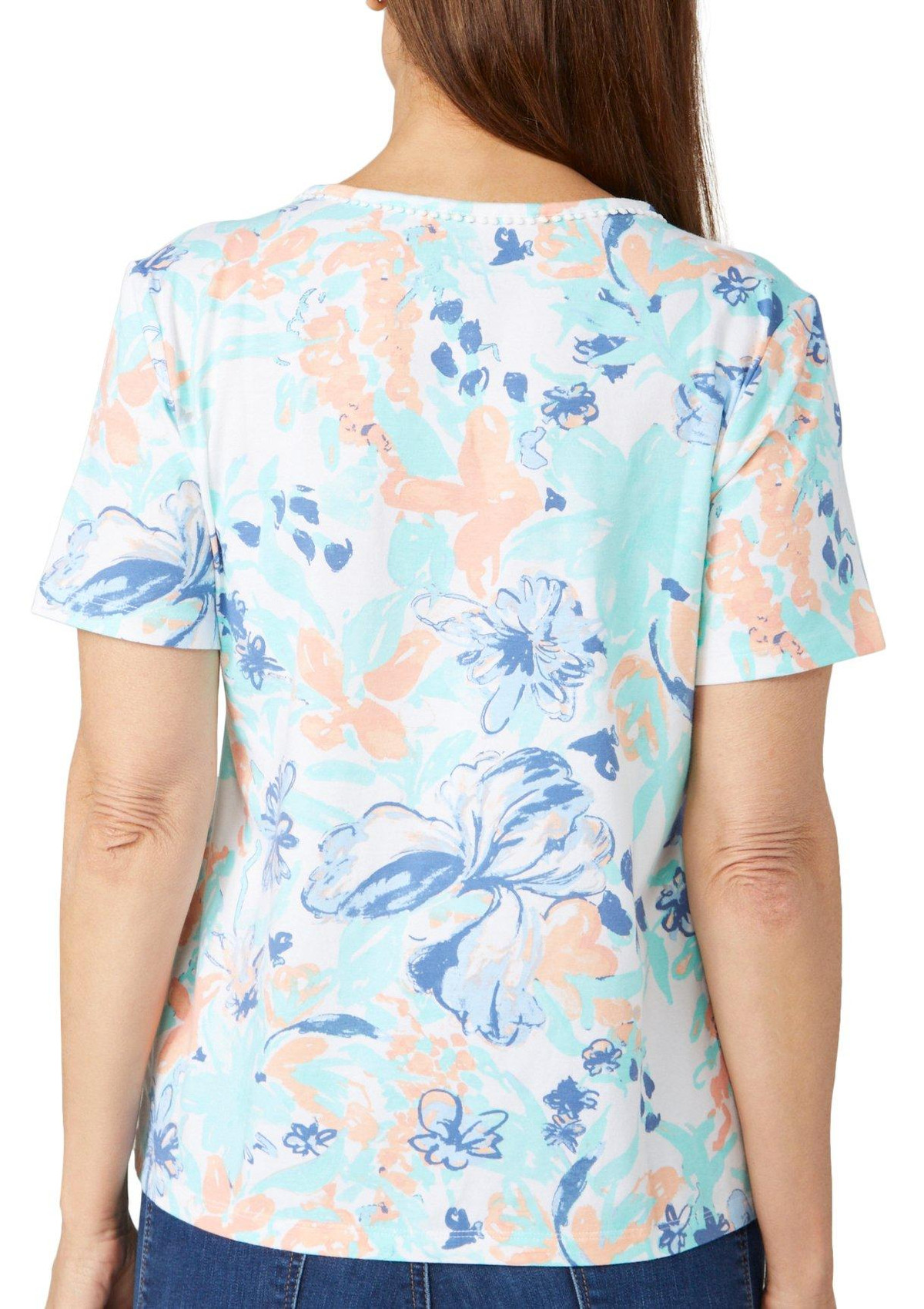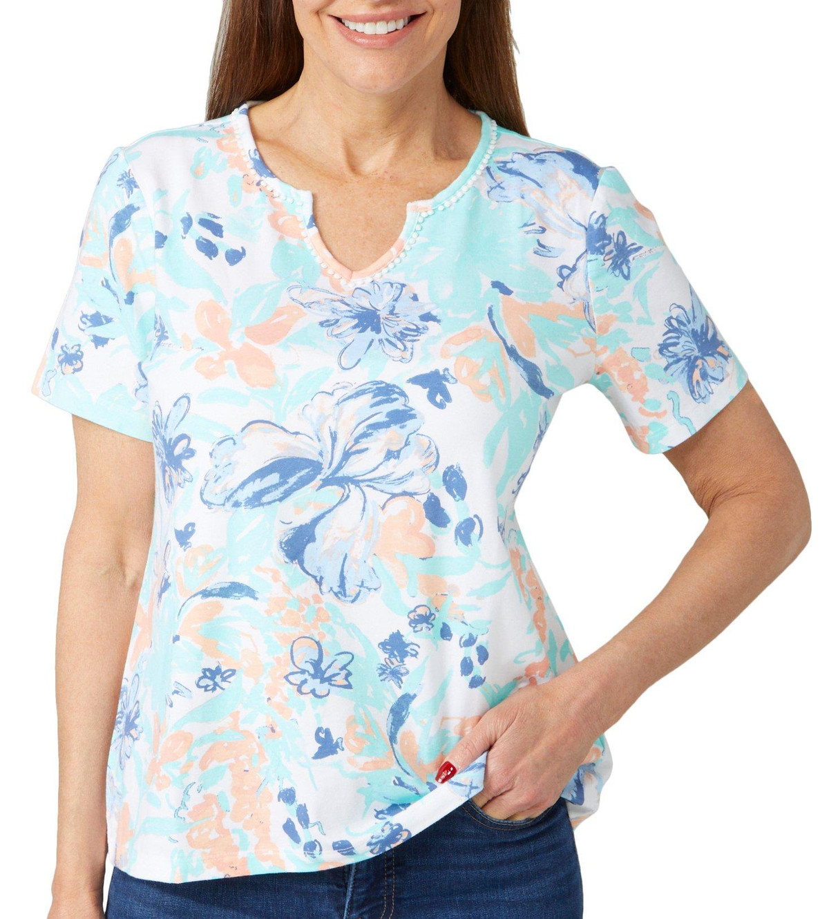 Coral Bay Petite Painted Florals Short Sleeve Top