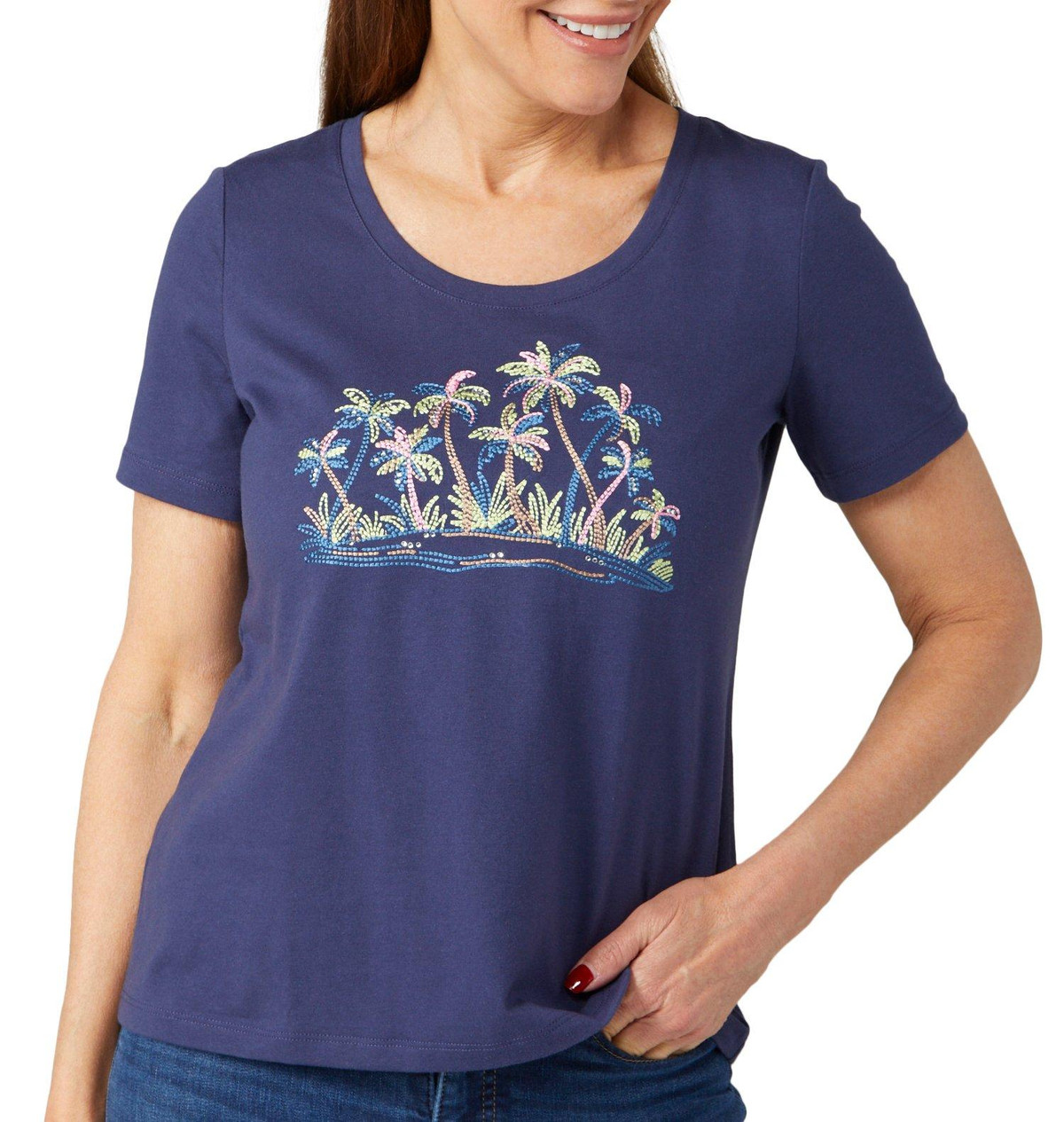 Coral Bay Petite Short Sleeve Oasis Palm Embellished Tee