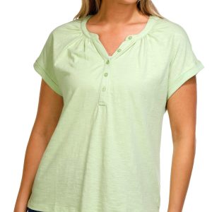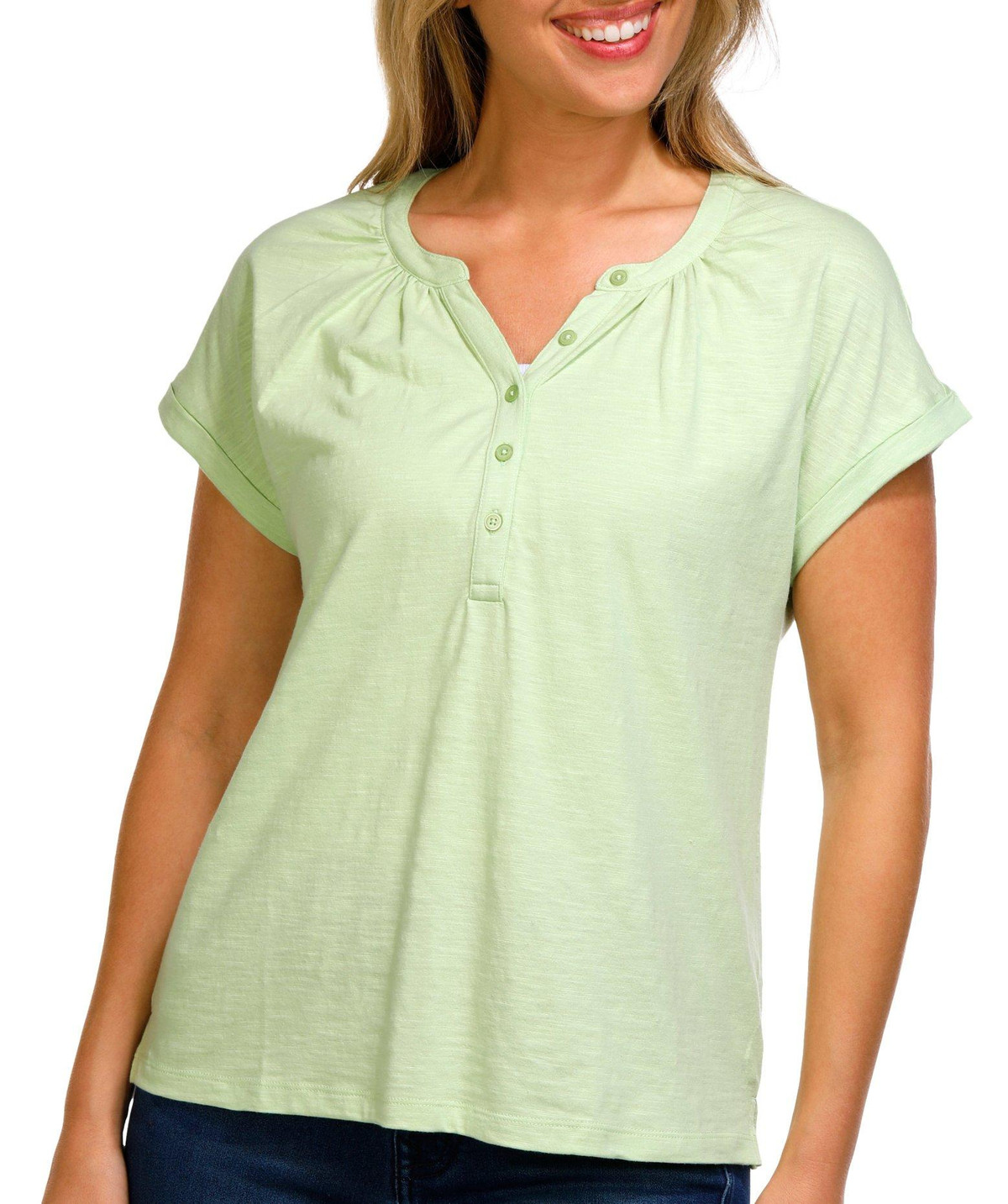 Elevate your everyday wardrobe with the Women’s Solid Dolman Henley Short Sleeve Top, crafted from 100% cotton for ultimate comfort and breathability. This versatile top features a relaxed dolman sleeve design that effortlessly blends style and ease, making it perfect for casual outings or leisurely days. The classic Henley neckline adds a touch of timeless charm, while the soft, durable fabric ensures a flattering fit that feels as good as it looks.