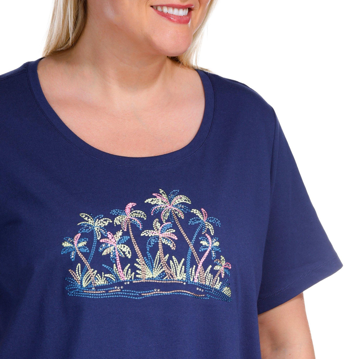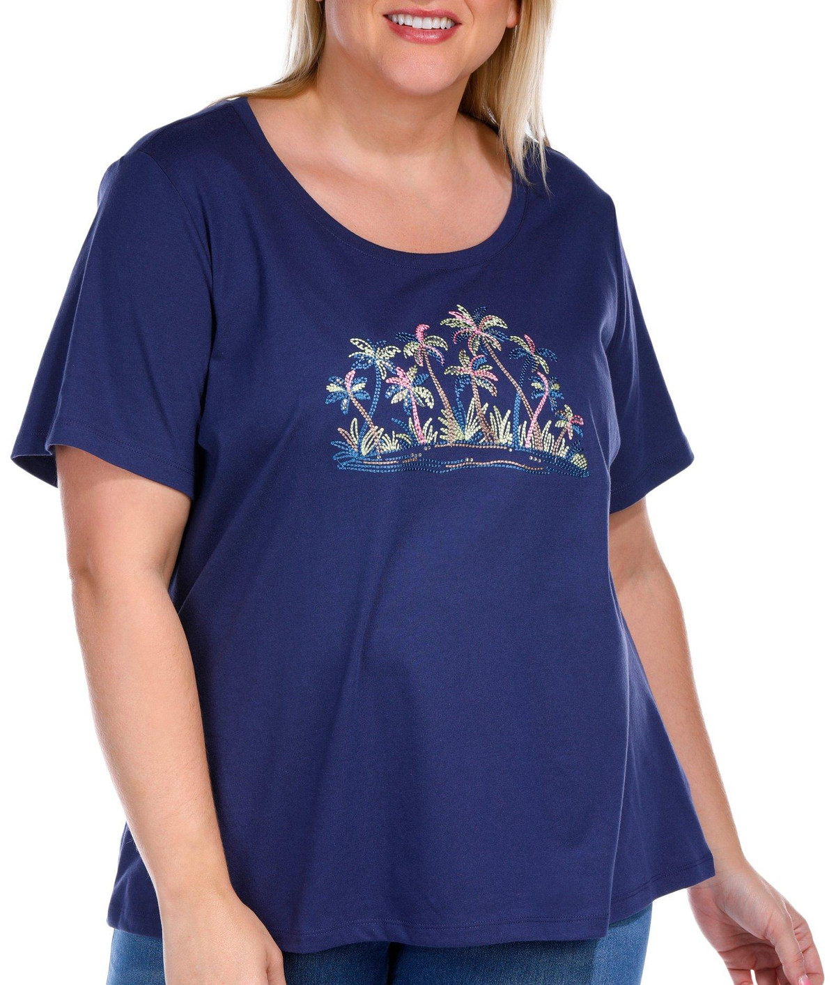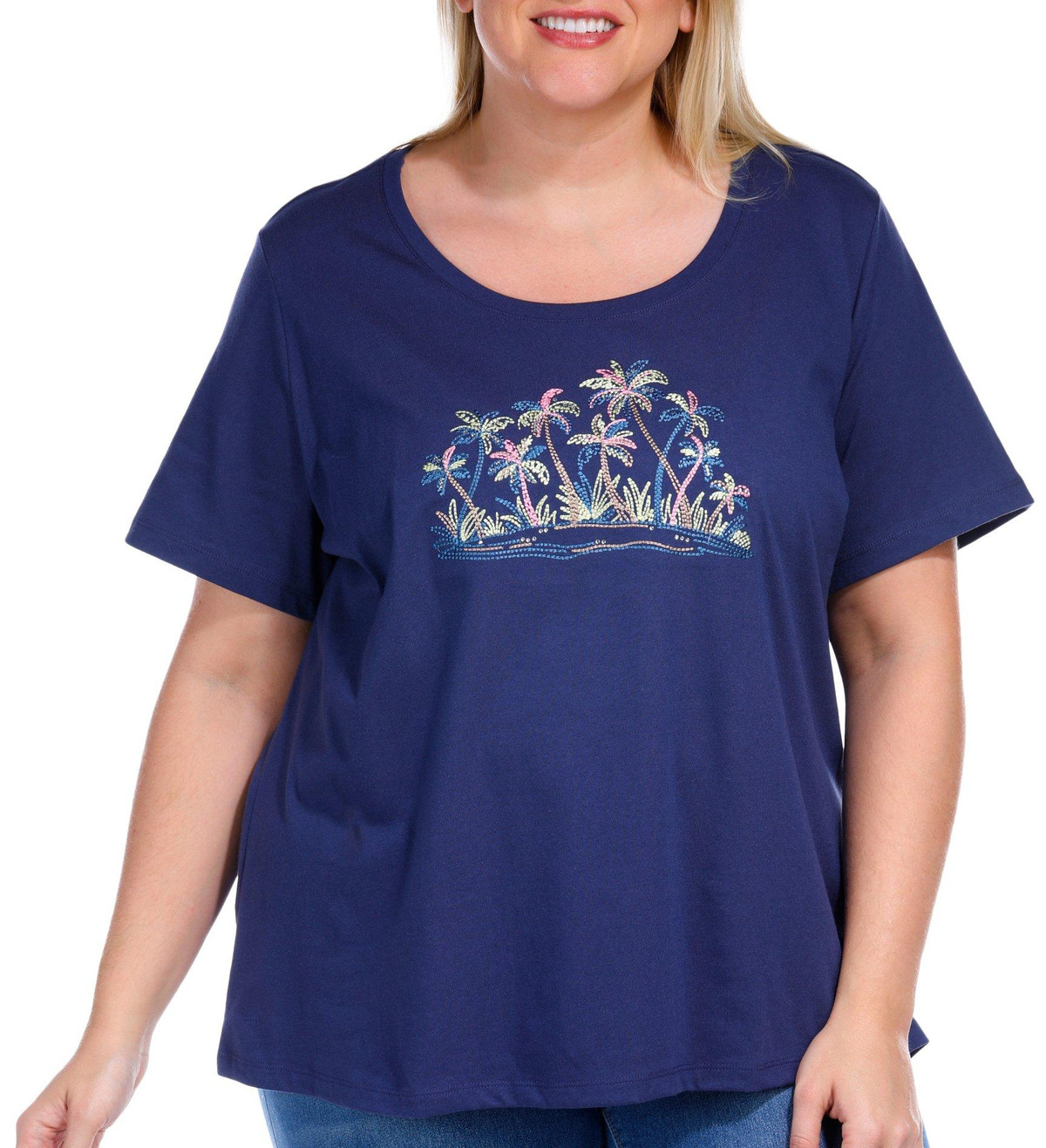 Add a touch of glamour to your wardrobe with the Plus Embellished Short Sleeve Top, designed for both comfort and style. Made from a blend of 60% cotton and 40% polyester, this top offers a lightweight, breathable feel with lasting durability. The exquisite embellishments elevate the design, adding a hint of sparkle and sophistication.