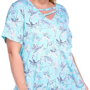 Add a splash of flair to your wardrobe with the Print Keyhole Short Sleeve Top, an ideal mix of style and comfort. Made from a soft and stretchy blend of 95% cotton and 5% spandex, this top provides a breathable yet figure-flattering fit. The eye-catching print design is complemented by a charming keyhole detail at the neckline, adding a hint of sophistication.