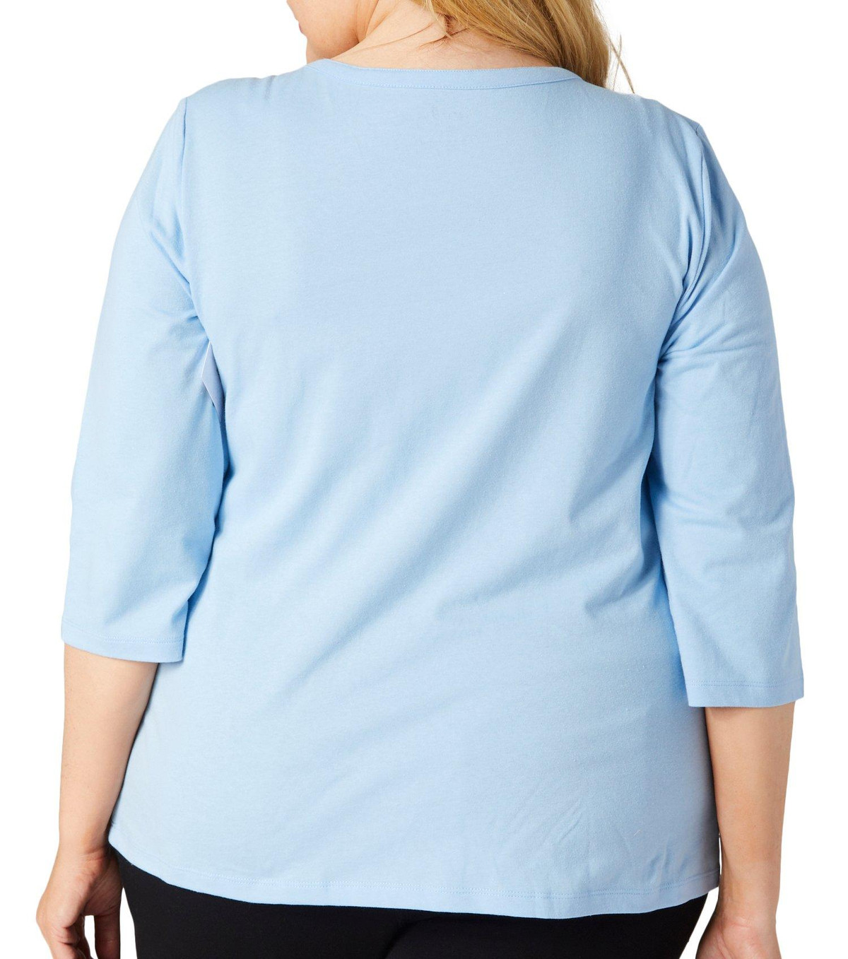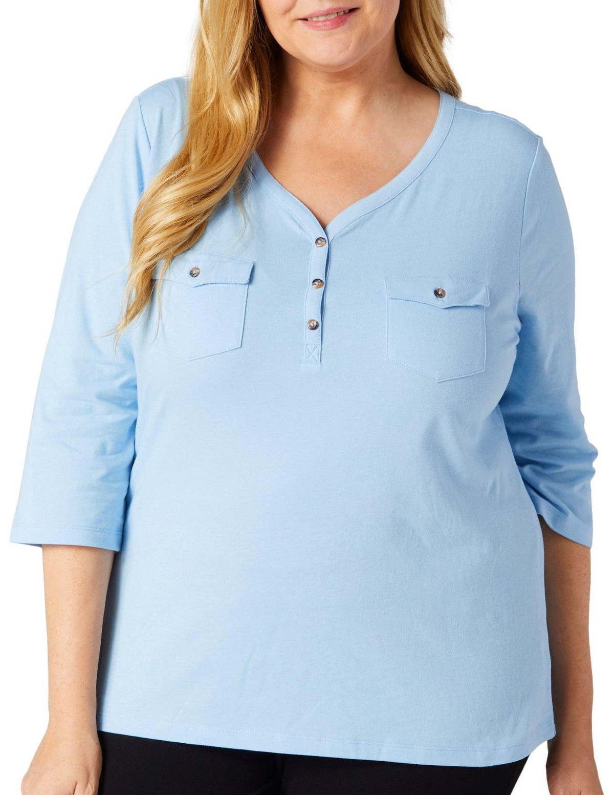 Coral Bay Plus Solid 3/4 Sleeve Henley Top