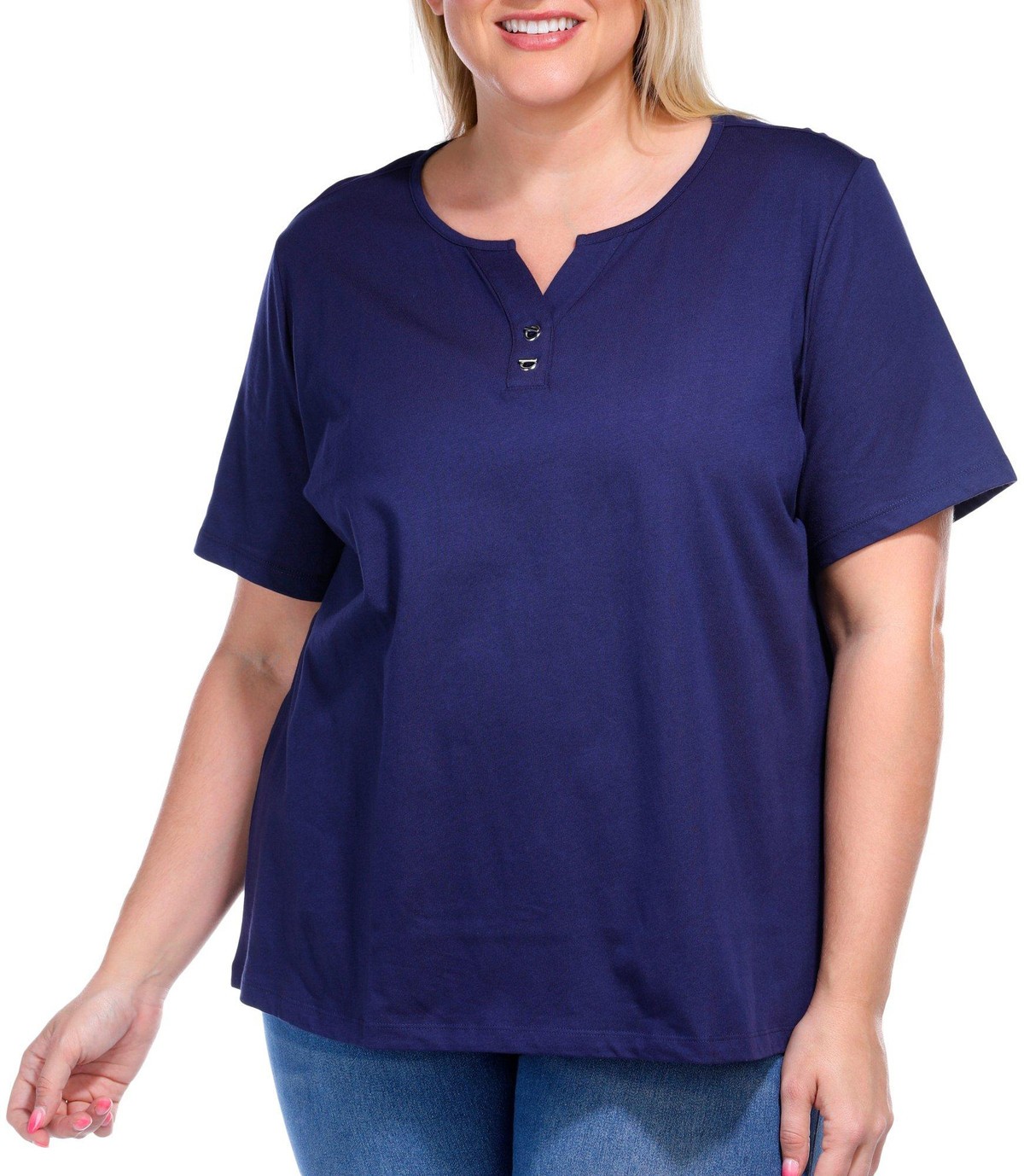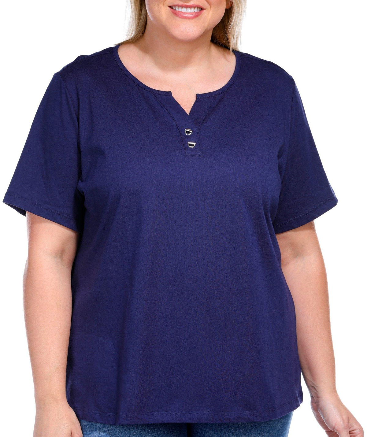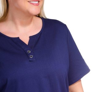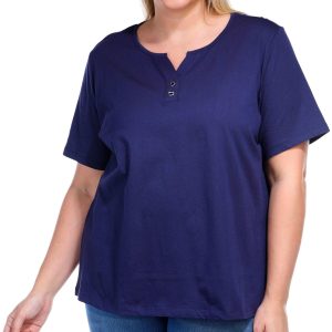 Experience effortless style and comfort with the 100% Cotton Solid V-Neckline Clasp Short Sleeve Top. Measuring approximately 26 inches in length, this versatile piece offers a flattering fit that suits any wardrobe. The elegant V-neckline, paired with a subtle clasp detail, adds a touch of sophistication, making it perfect for both casual and semi-formal occasions.