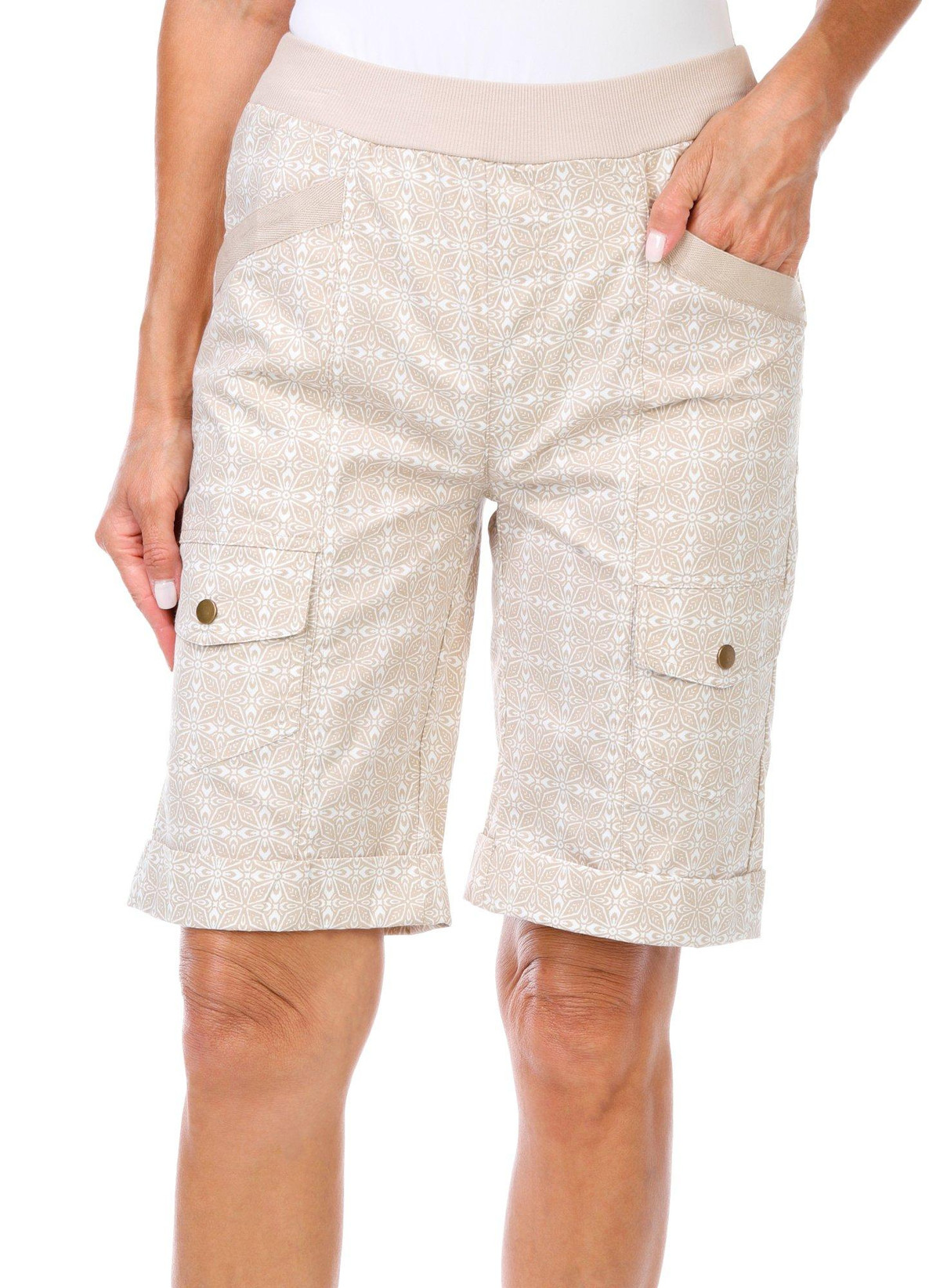 This womens pair of Bermuda shorts is made from breathable poplin fabric for lightweight comfort. Featuring rolled cuffs for a relaxed finish, they are perfect for warm weather and easy everyday wear. Self fabrication is 60% cotton, 37% polyester, and 3% spandex. Contrast fabrication is 96% cotton and 4% spandex.