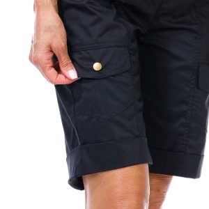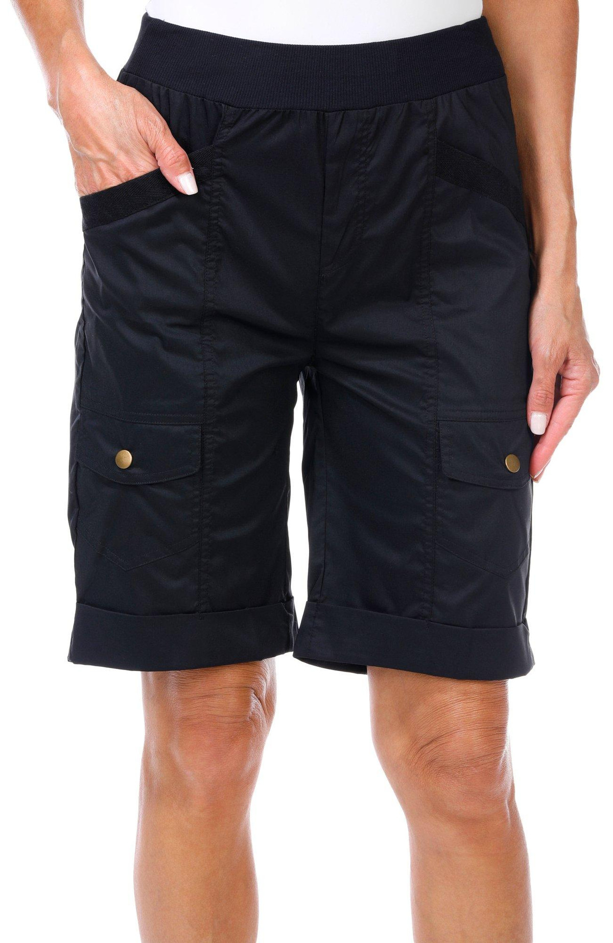 This womens pair of Bermuda shorts is made from breathable poplin fabric for lightweight comfort. Featuring rolled cuffs for a relaxed finish, they are perfect for warm weather and easy everyday wear. Self fabrication is 60% cotton, 37% polyester, and 3% spandex. Contrast fabrication is 96% cotton and 4% spandex.