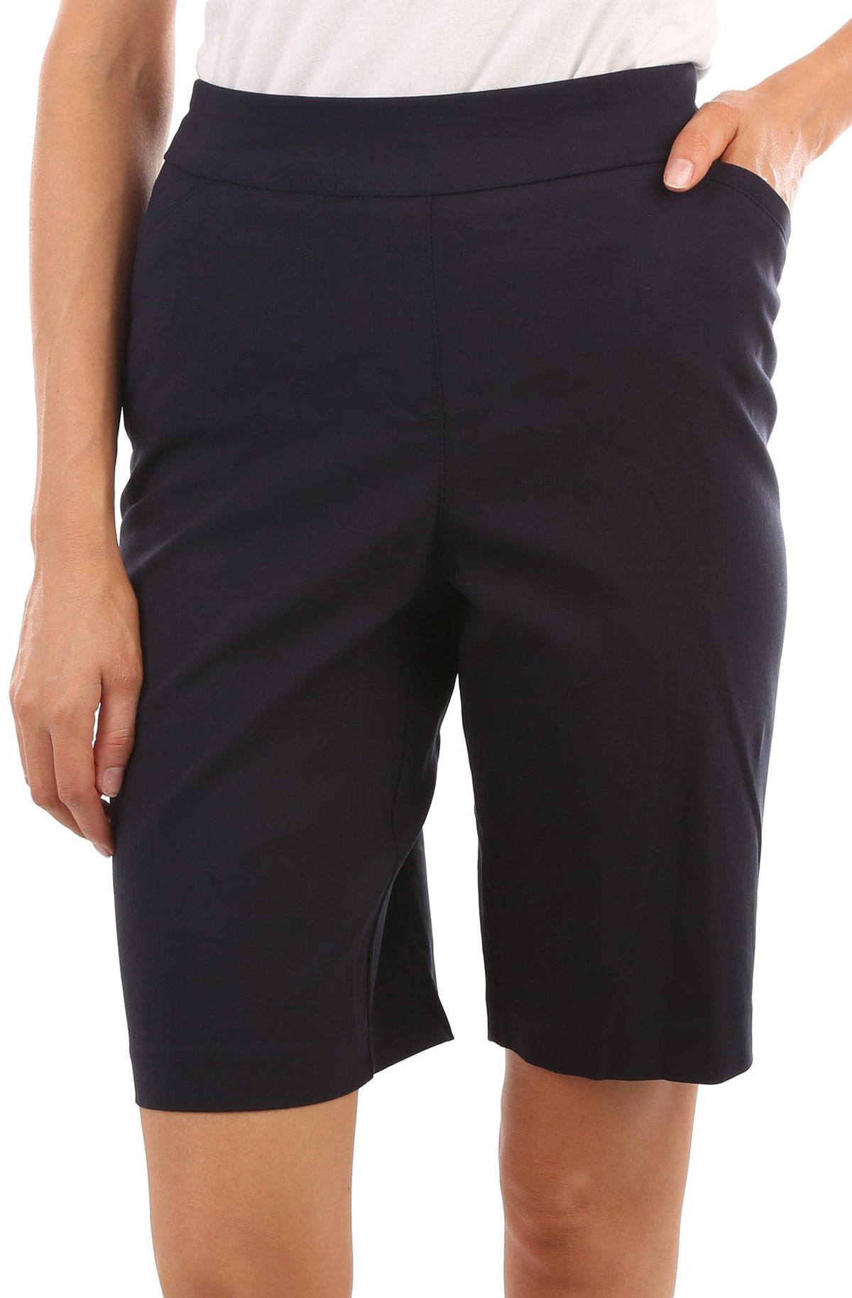 Coral Bay offers classic casual collections for your relaxed lifestyle. These pull-on shorts feature a solid color design on lightweight knit fabric, a comfort stretch waistband, front pockets, two faux back pockets, and a classic fit. The inseam measures approximately 11 in. Fabrication 75% rayon, 22% nylon, 3% spandex.