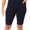Step into style with the Women’s 12 in Gold Button Accent Bermuda Shorts. Featuring a comfortable pull-on waistband, front pockets, and a sleek 12-inch inseam, these shorts are finished with chic gold button accents at the hem for a polished touch.
